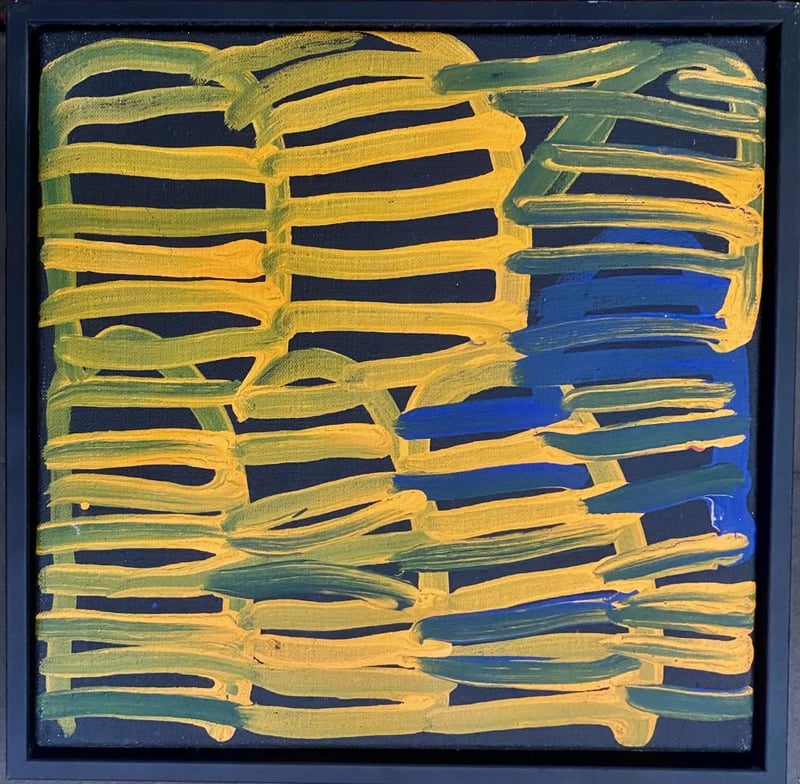 Canvas. Her First Series Of Works Painted At The Utopia Communities Workshops Were Linear