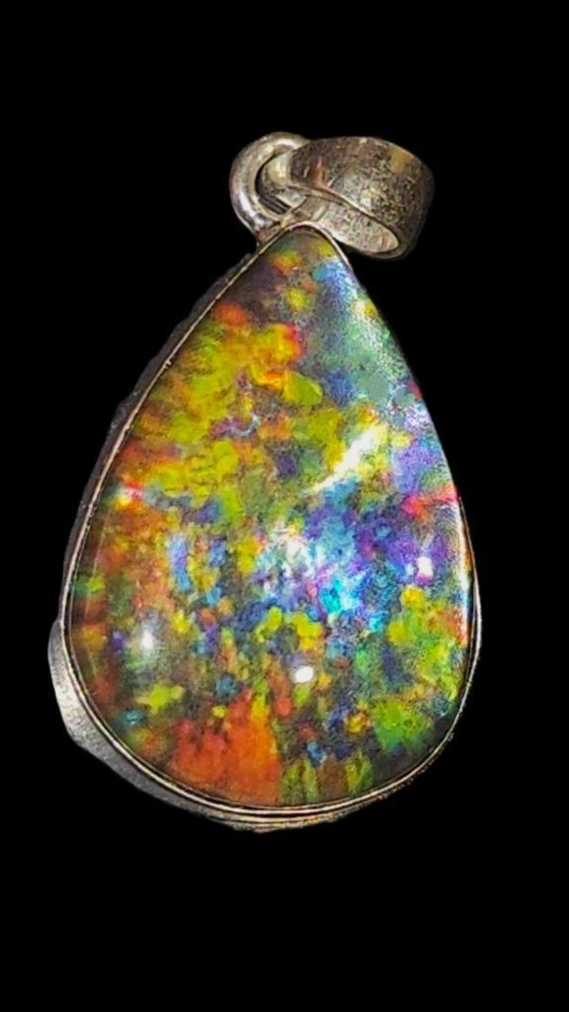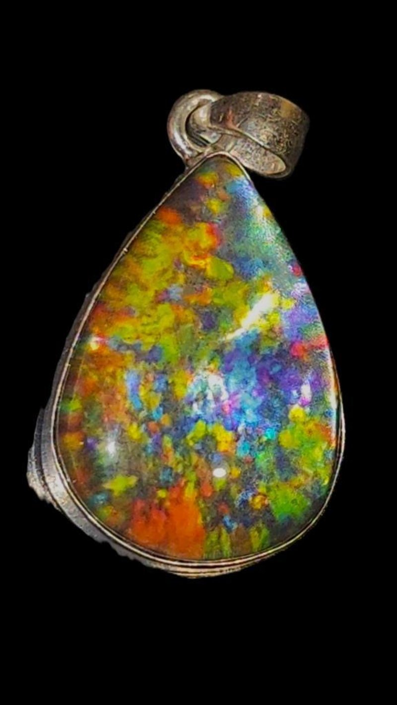 43 CARATS STERLING SILVER OPAL TRIPLET PENDANT.