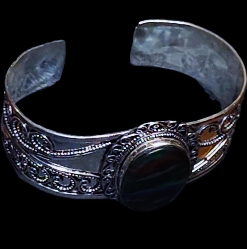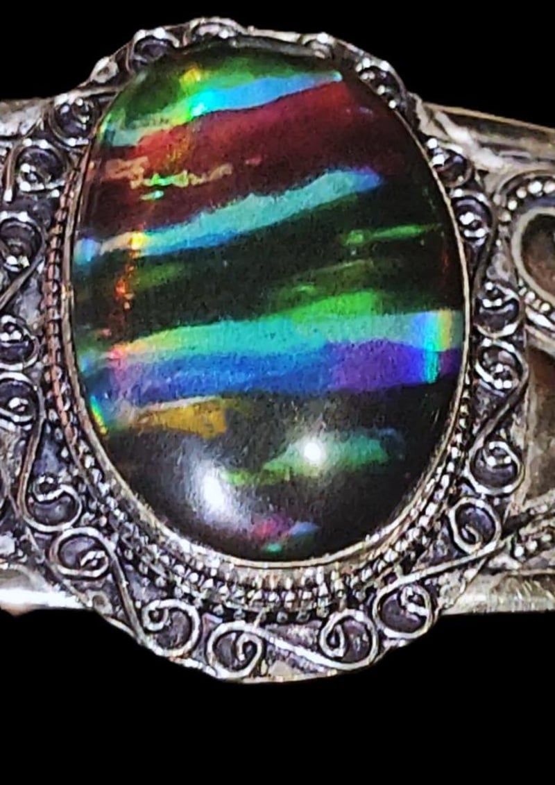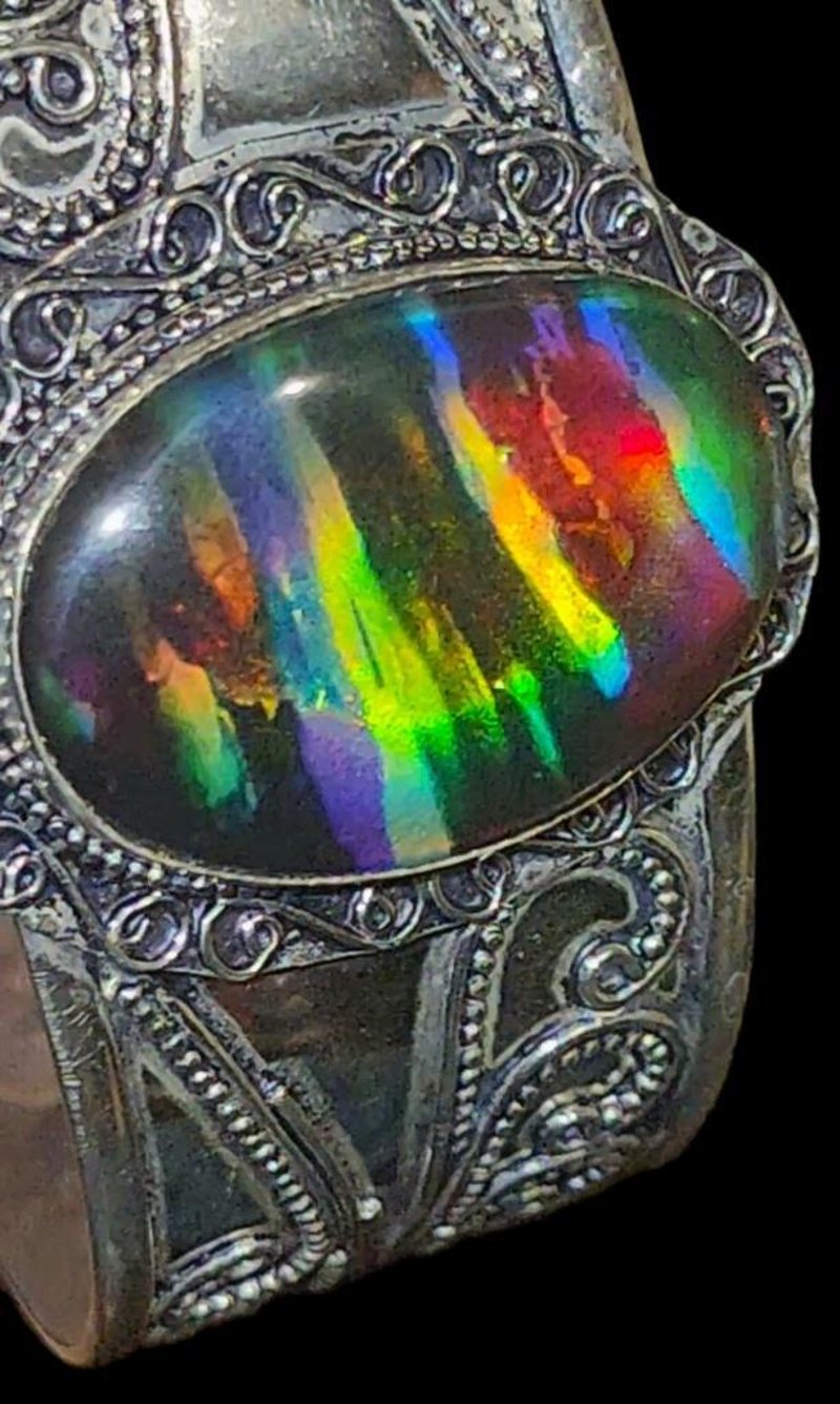 218 CARATS STERLING SILVER AND AMMONITE TRIPLET CUFF BRACELET