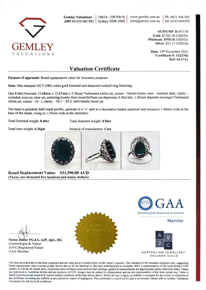 This valuation has been conducted by an independent third-party professional. The valuation amount is an assessment by the issuing valuer and does not reflect the auction value of the item.