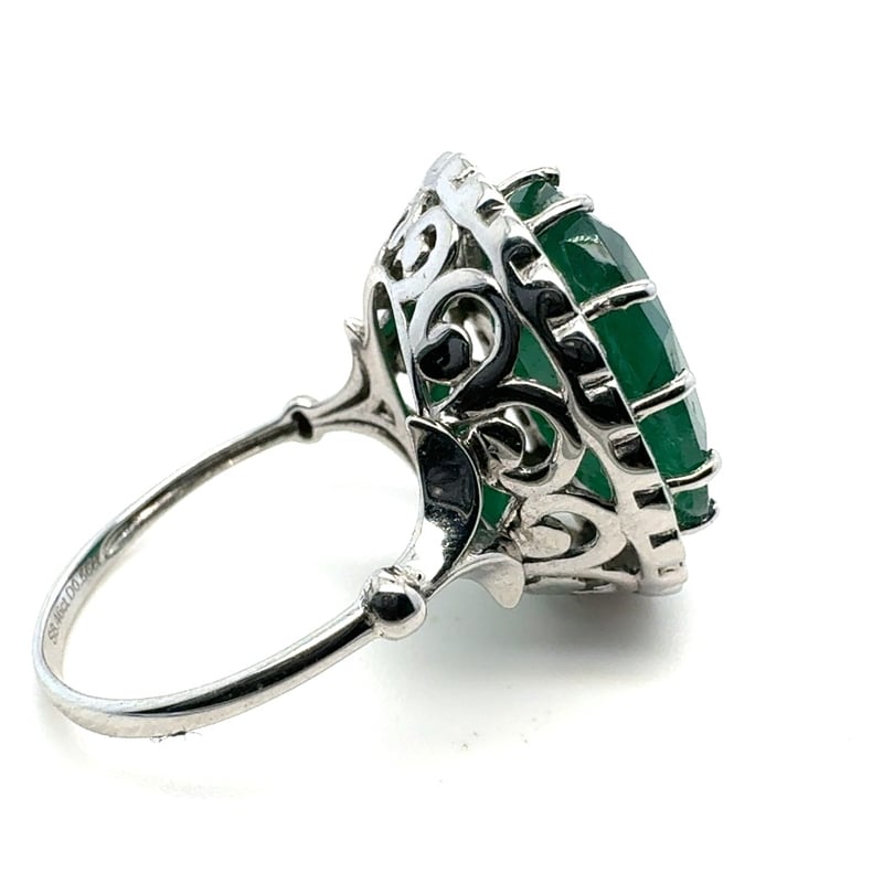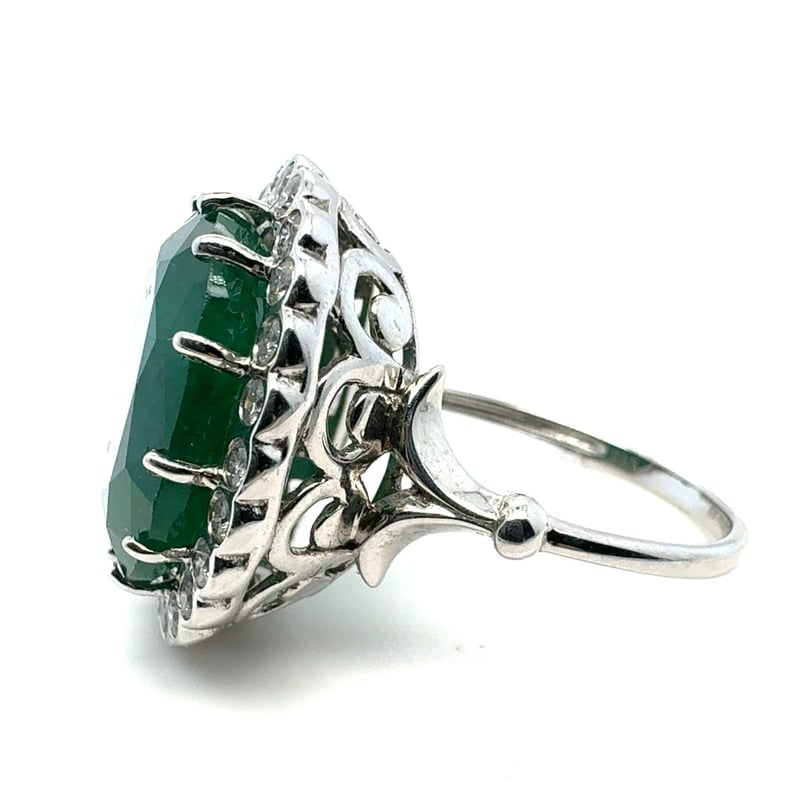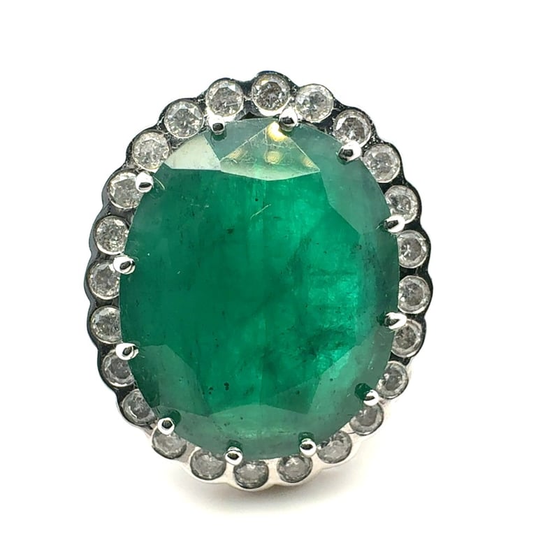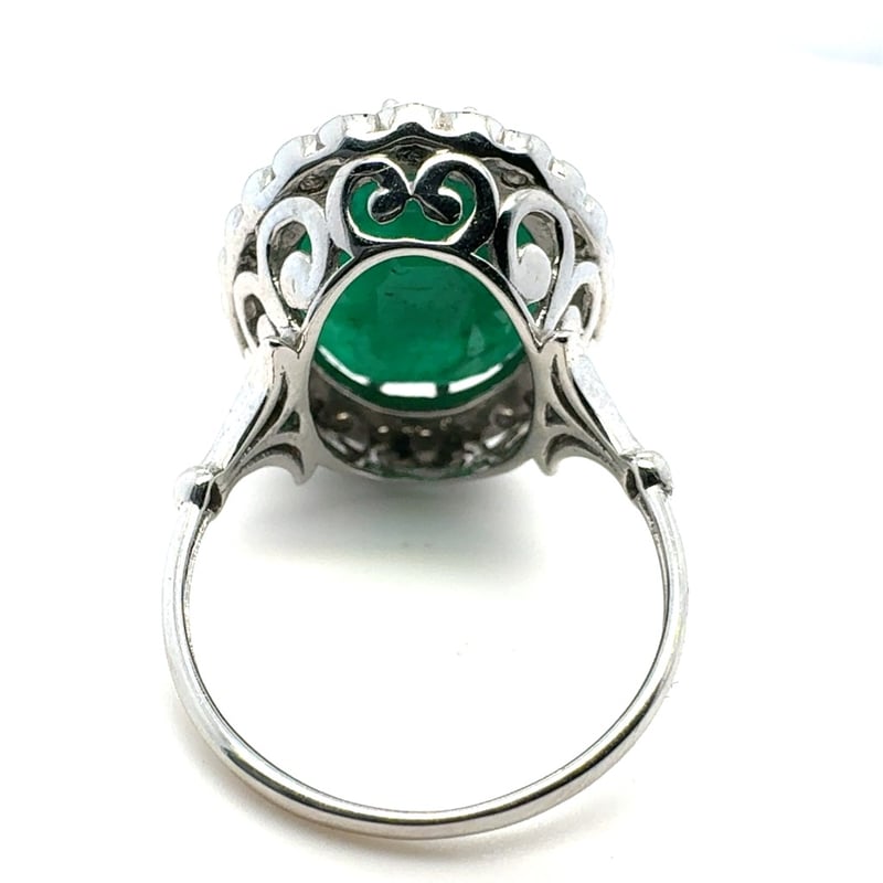 14CT WHITE GOLD OVAL CUT EMERALD AND DIAMOND RING