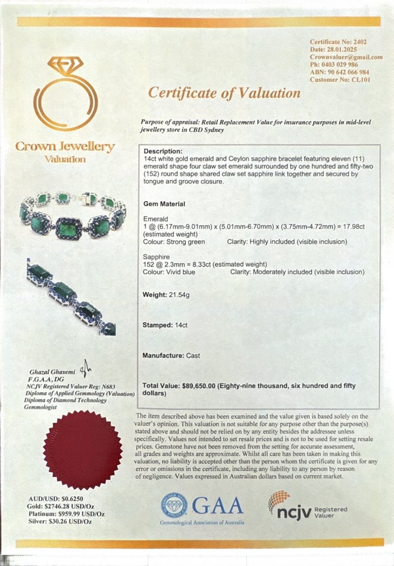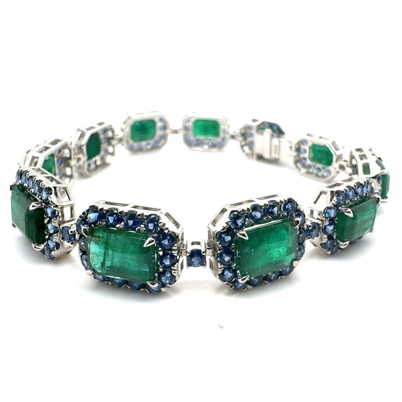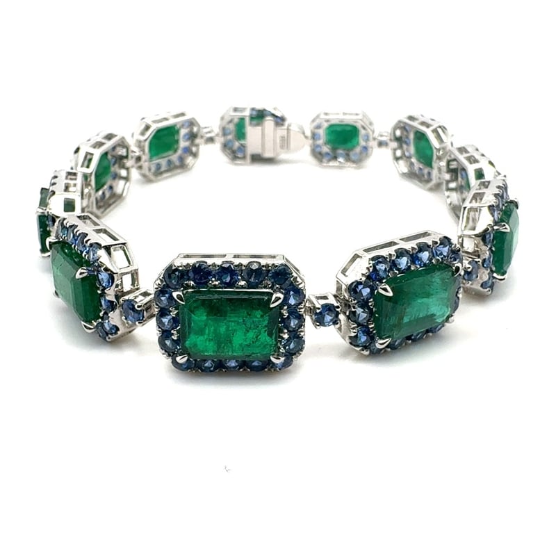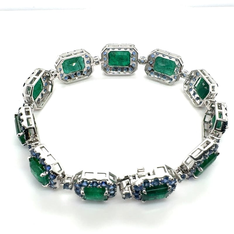 14CT WHITE GOLD EMERALD AND CEYLON SAPPHIRE BRACELET