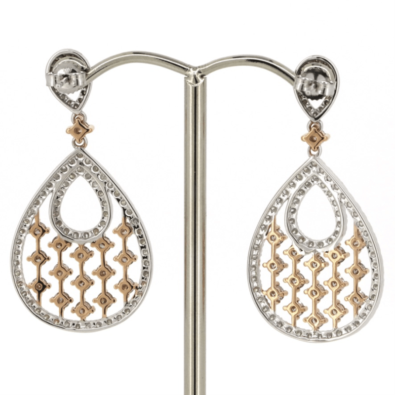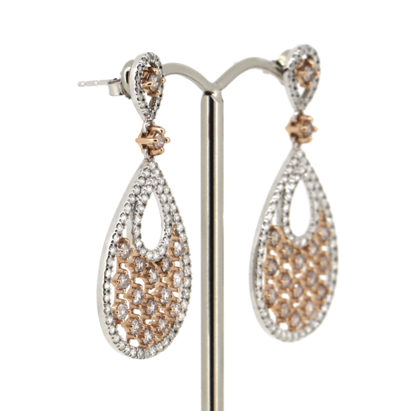14K WHITE/ROSE GOLD, FANCY PINK DIAMOND, DROP EARRINGS.
