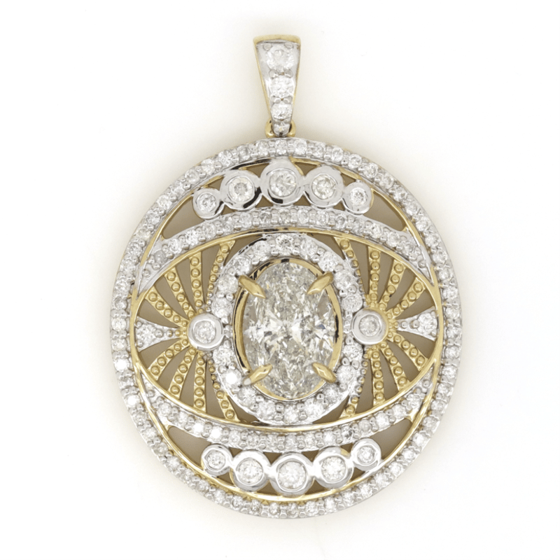 The Centre Features, One Oval Moderate Brilliant Cut, Diamond (1.27Ct Tdw, K-L Colour, P2-P3 Clarity) 4 Claw Set. Encompassing The Centre Are, 124 Round Brilliant Cut, Diamonds (0.80Ct Tdw, H-J Colour, P2-P3 Clarity) Micro-Bead/Bezel Set.