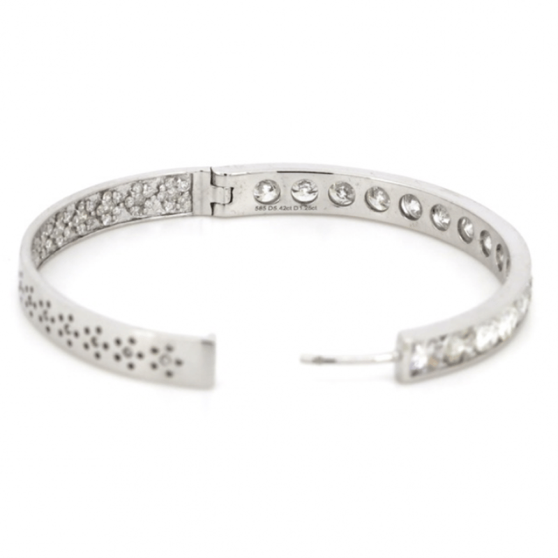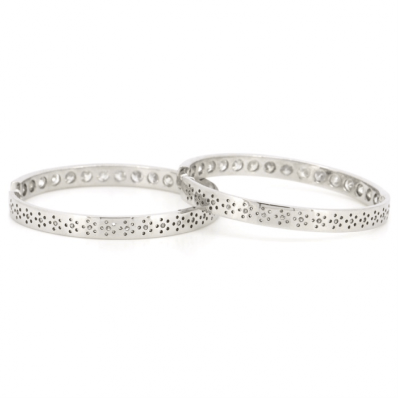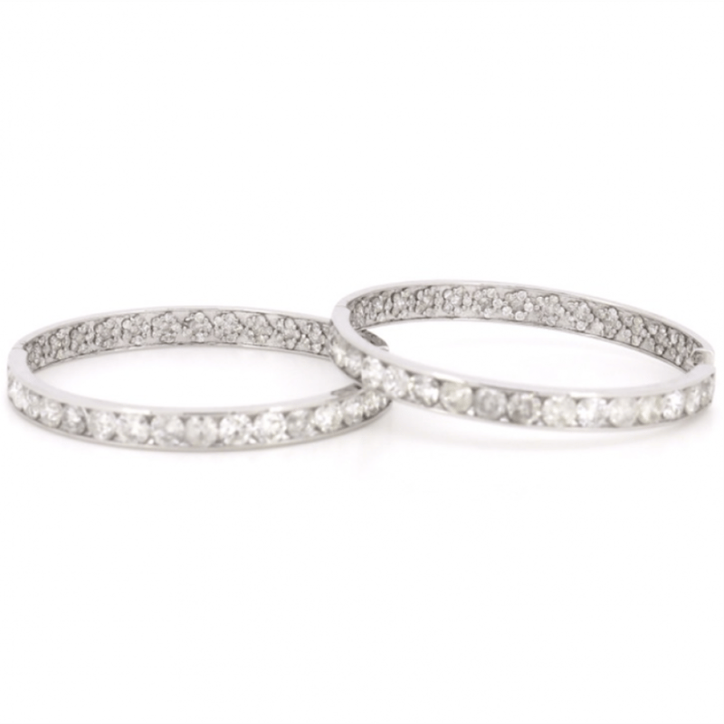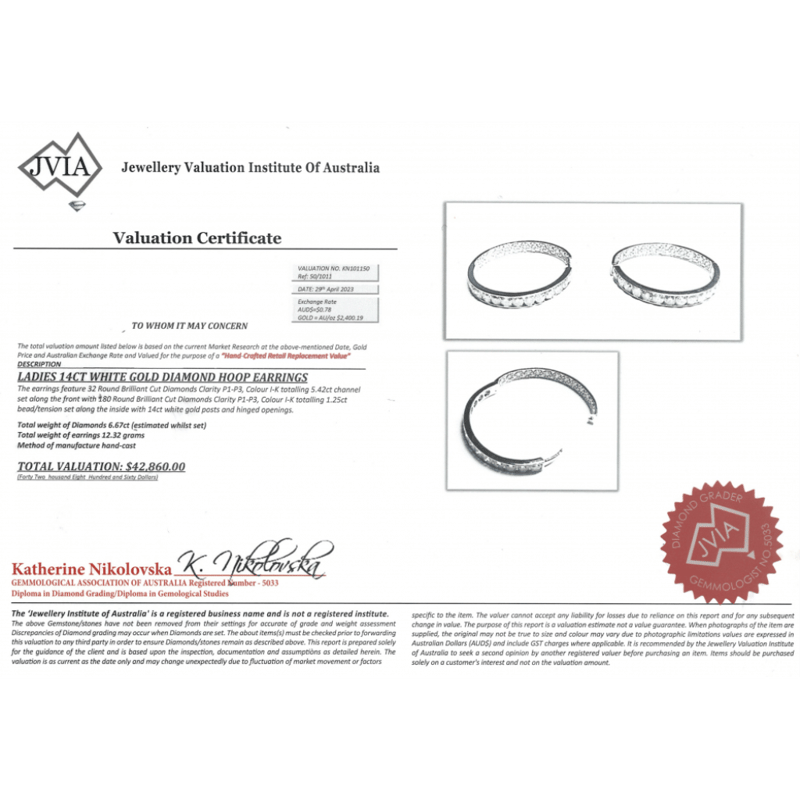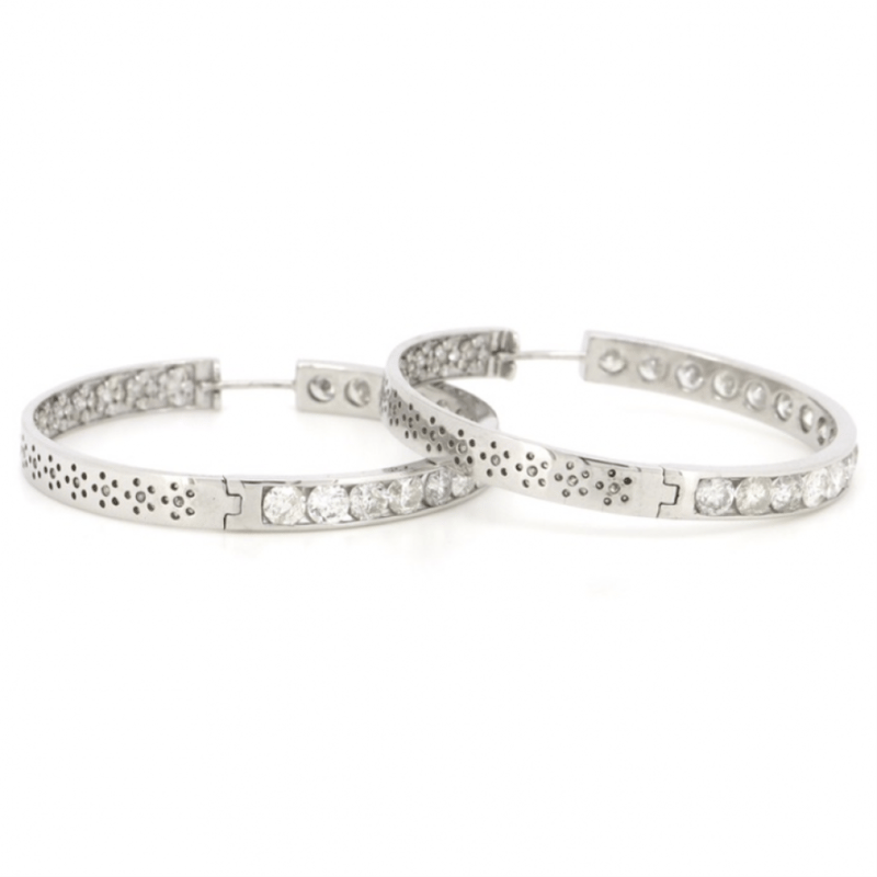 14K WHITE GOLD, 6.67CT TDW DIAMOND, HOOP EARRINGS.
