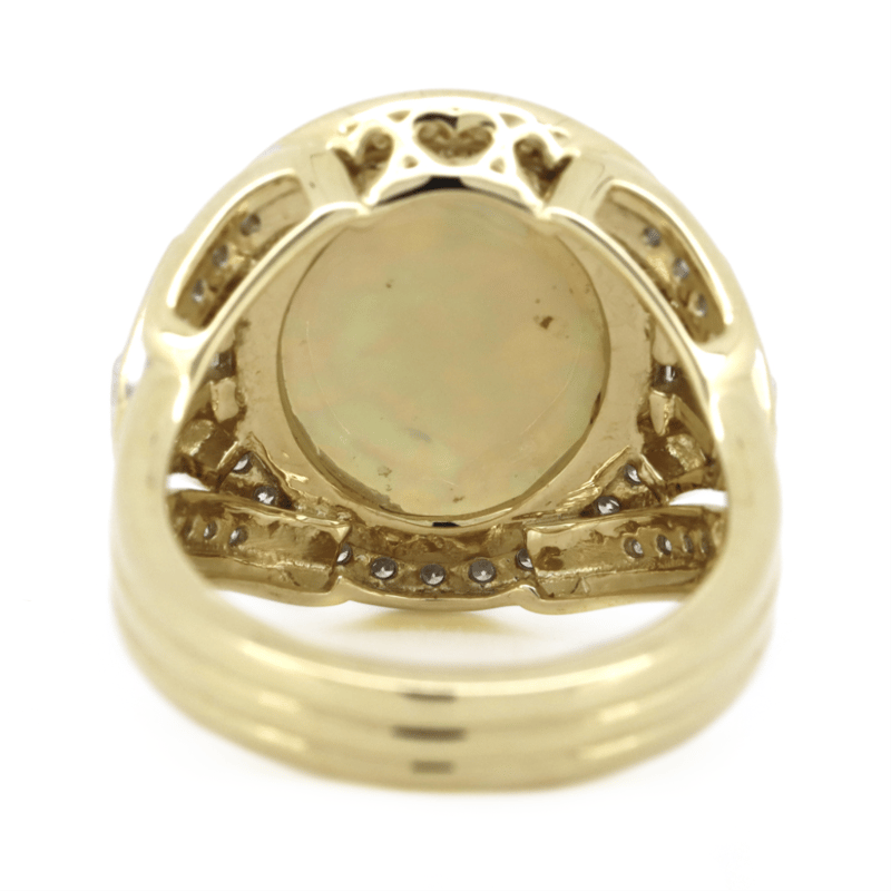 14K YELLOW GOLD, 4.19CT AUSTRALIAN COOBER PEDY OPAL AND DIAMOND, STATEMENT RING.