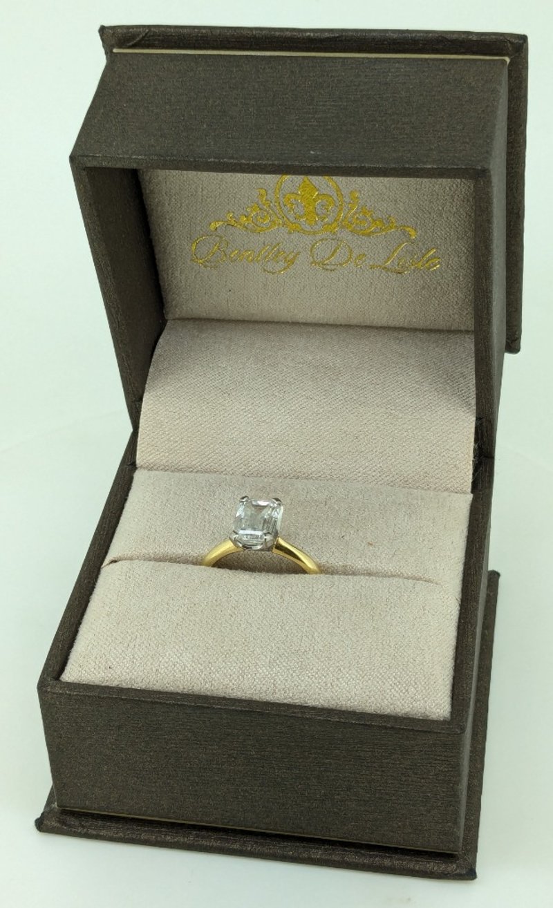 18CT YELLOW AND WHITE GOLD SOLITAIRE ENGAGEMENT RING
