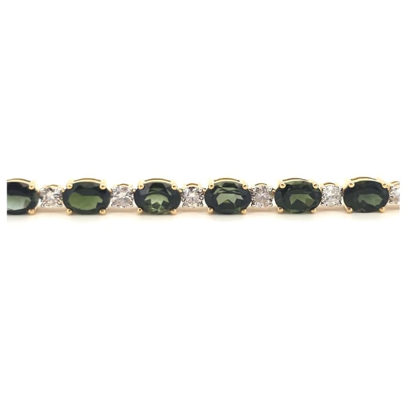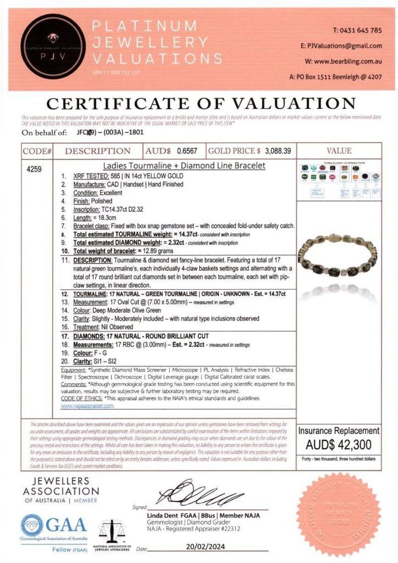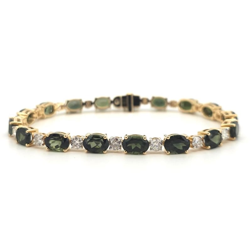 Featuring, 17 Oval Cut, Olive Green Tourmalines (14.37Ct Tsw, Slightly - Moderately Included), Claw Set, With 17 Round Brilliant Cut Diamonds (2.32Ct Tdw, F-G Colour, Si1-Si2 Clarity), Claw Set. Length Is 17.50Cm.