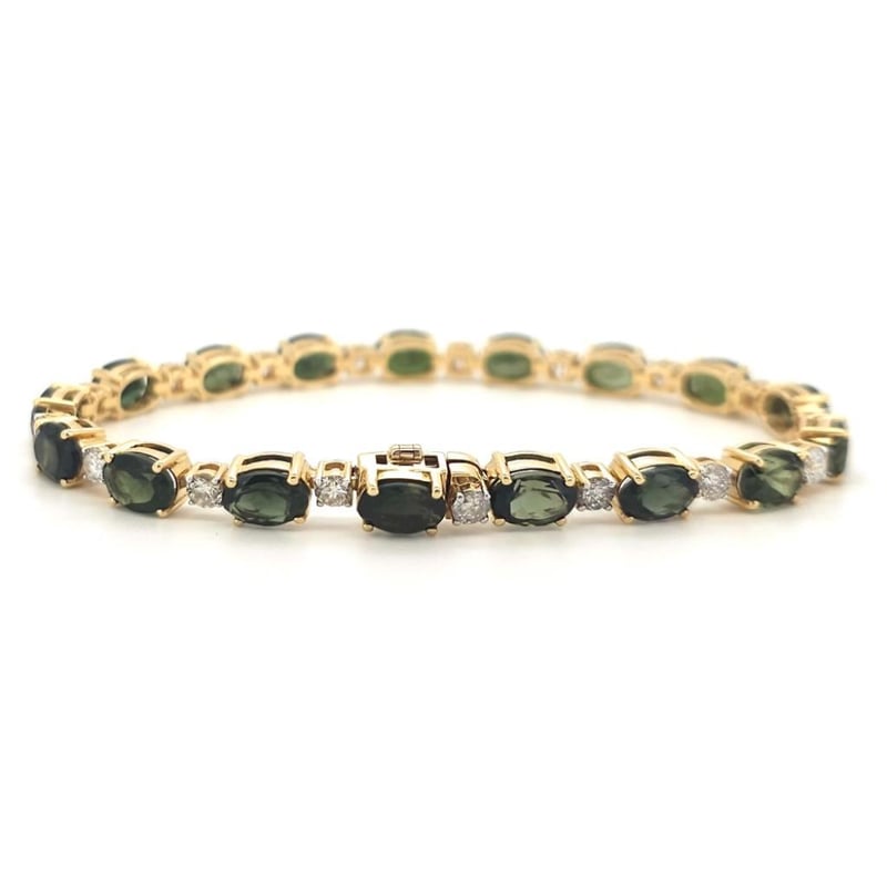 14CT YELLOW GOLD TOURMALINE AND DIAMOND LINE BRACELET