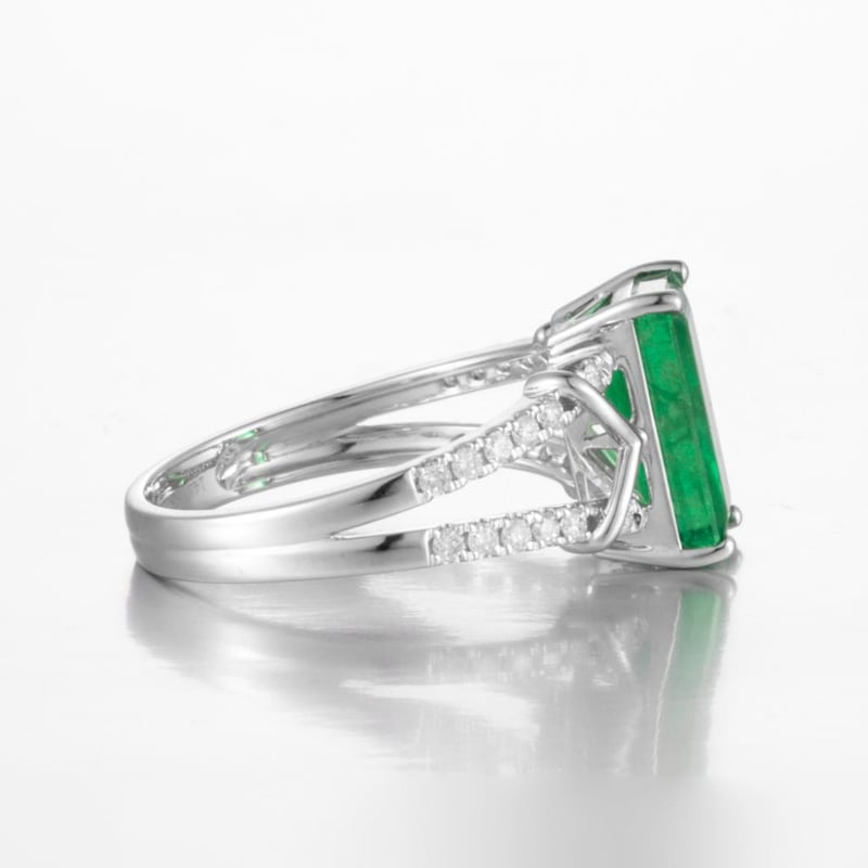 14CT WHITE GOLD COLOMBIAN EMERALD AND DIAMOND DRESS RING