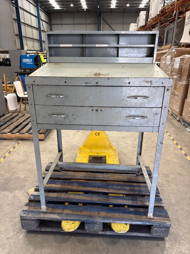 Desk, Industrial steel Workshop desk, Colour Grey. Approx dimensions- 138h X 90w X 61d.