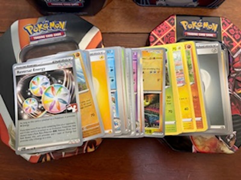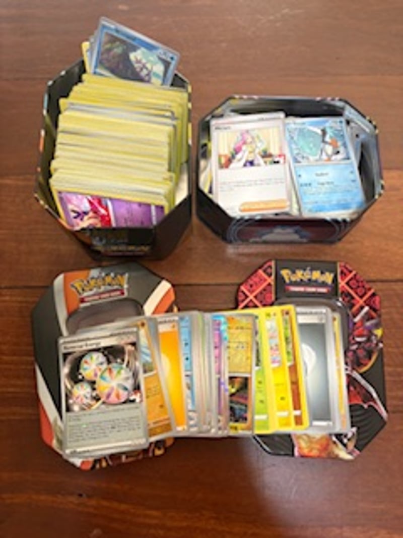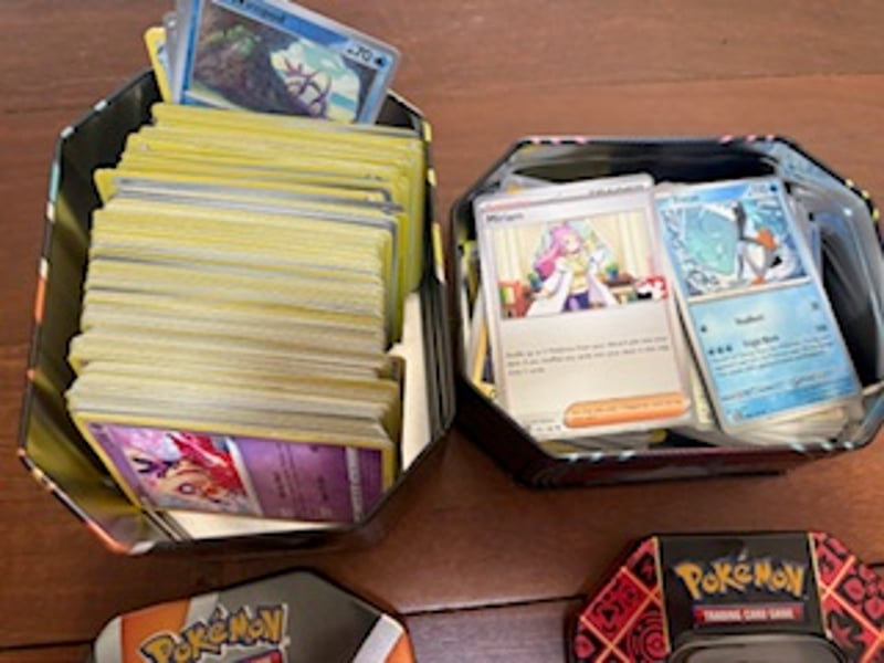 POKEMON CARDS AND TINS PACK 2X Pokemon Tcg Tins Approx 500 Cards (Halo/Reverse Holo/Commons) Condition: Good - Refer To Images SR 233632+2