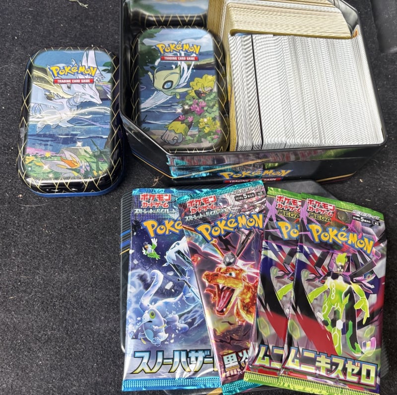 Japanese Pokemon Collectors Cards (Aprox 400 - Halo/Reverse Holo/Commons) + 4 X Japanese Unopened Packs + Tcg Tin