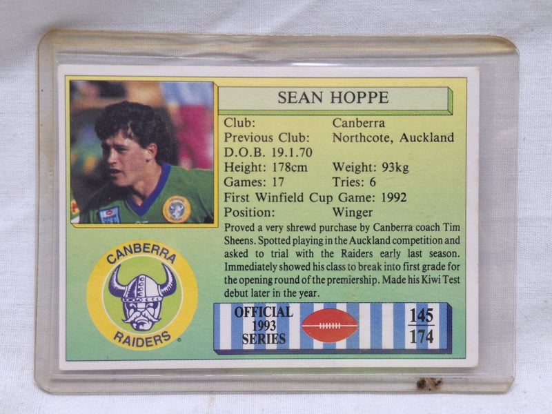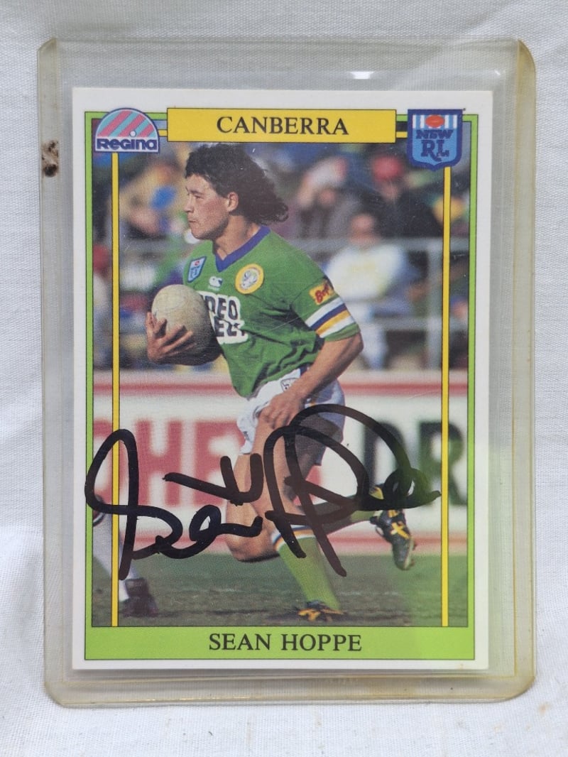 SIGNED SEAN HOPPE CANBERRA RAIDERS NRL TRADING CARD 1993 OFFICIAL SERIES