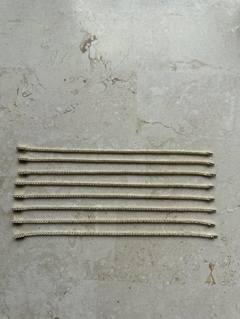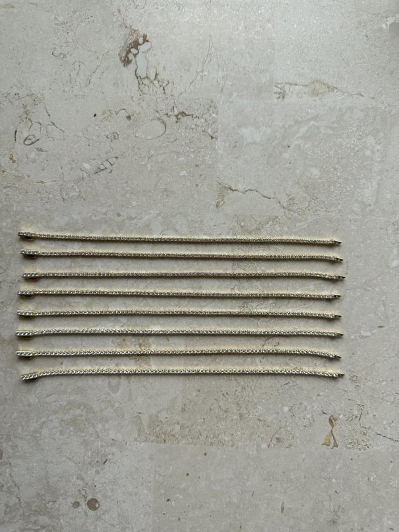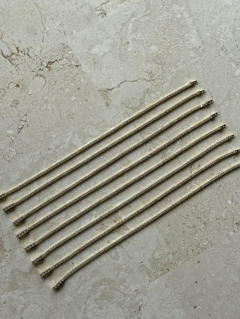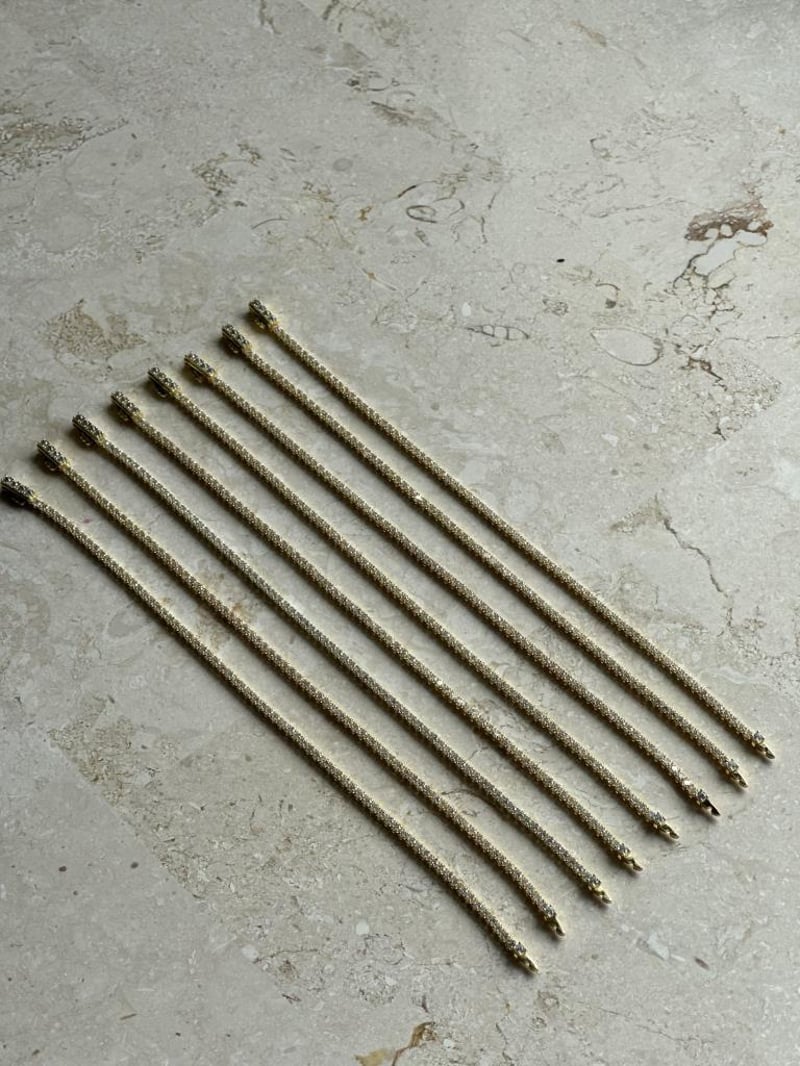 BAG OF 8 X 925 STERLING SILVER 14 K GOLD PLATED TENNIS BRACELETS, 17.5CM