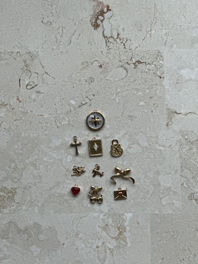 BAG OF 10 X MIXED STERLING SILVER 14K PVD GOLD PLATED CHARMS