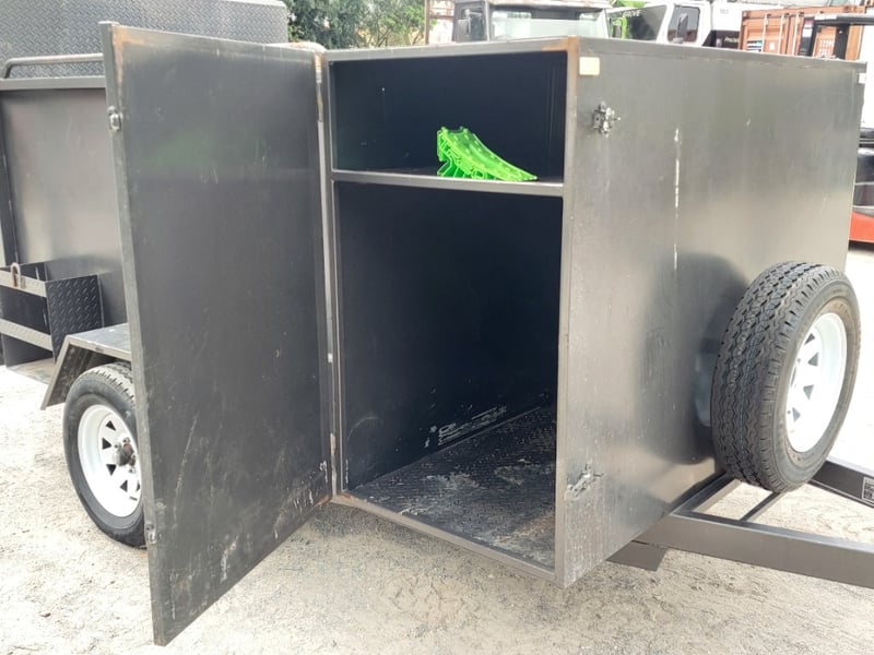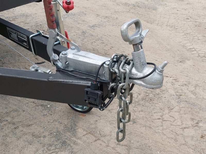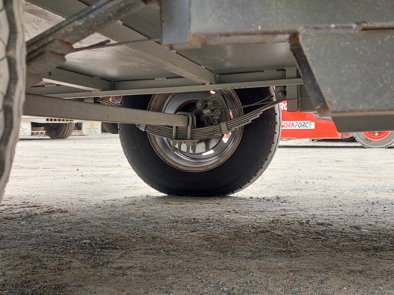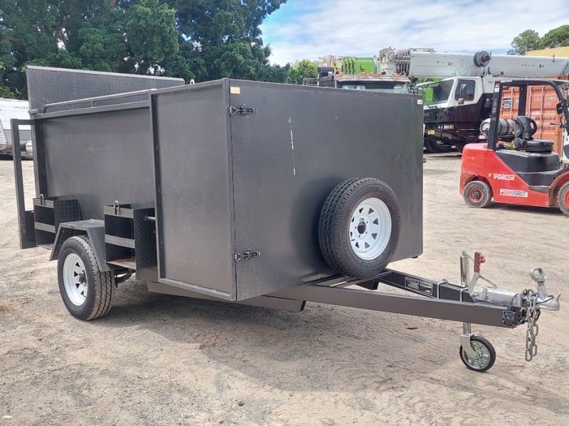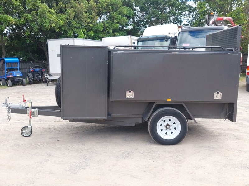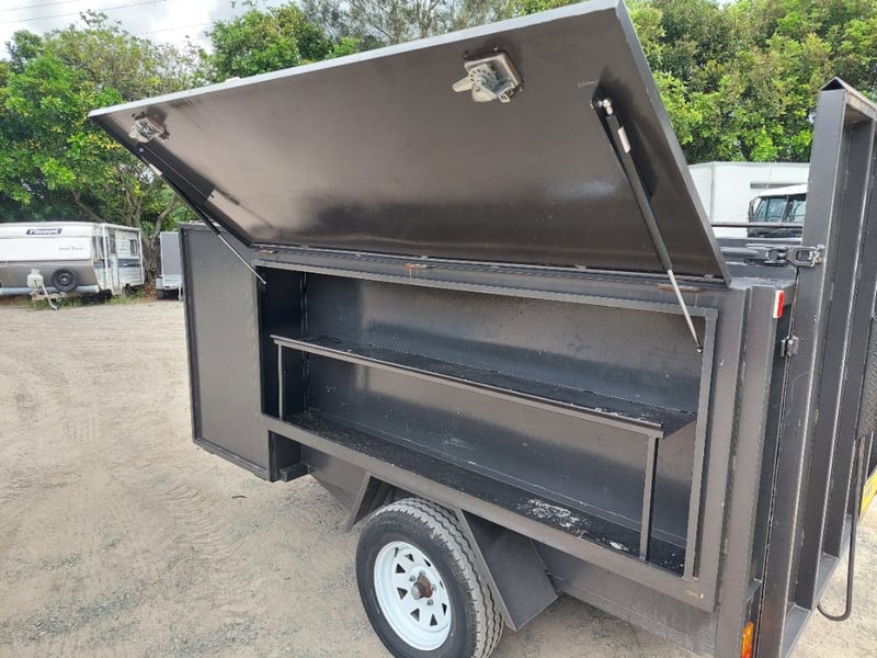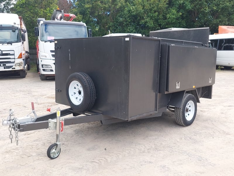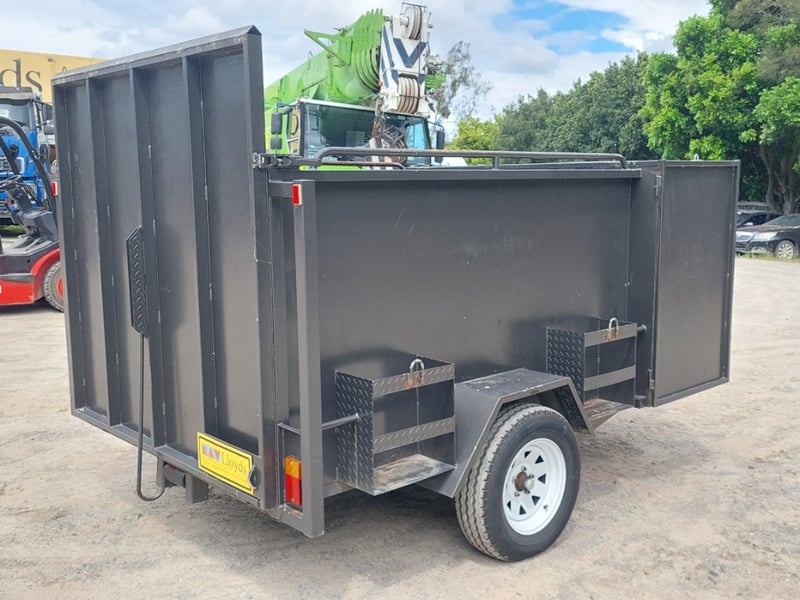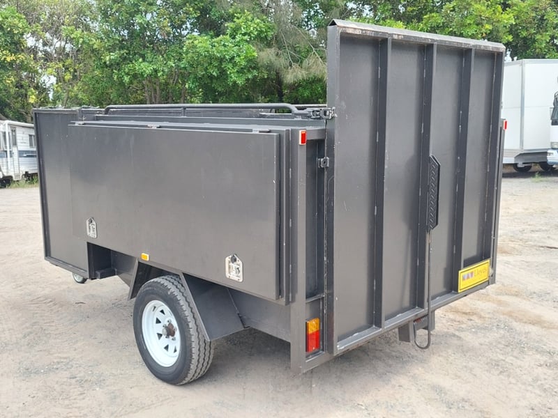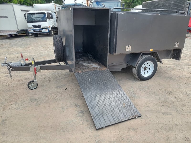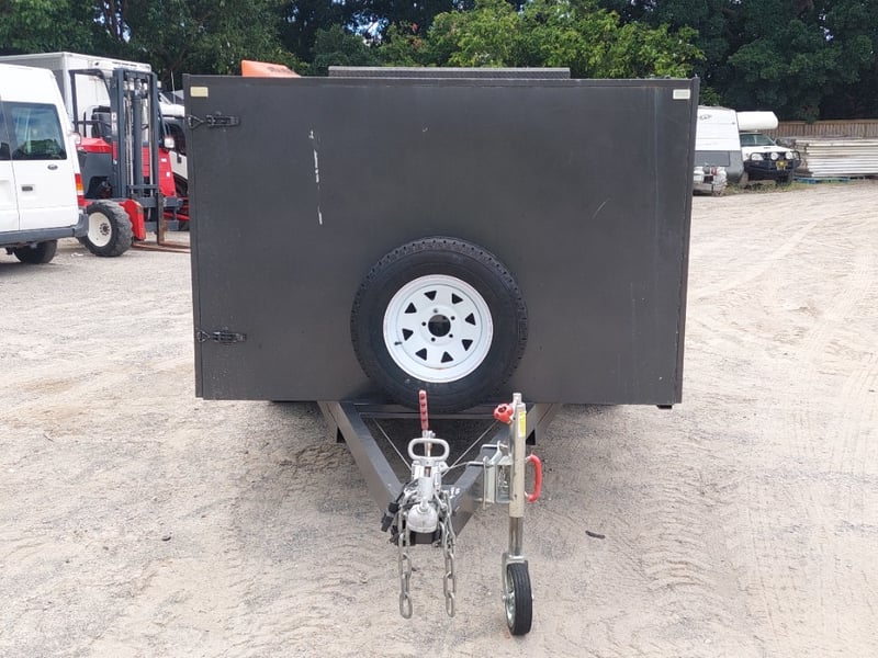 Description: 50mm Towball Connection, 7 Pin Connector, Hand Brake, Jockey Wheel, Spare Tyre, Storage Compartments, Drop Tray (Acts As Ramp)
