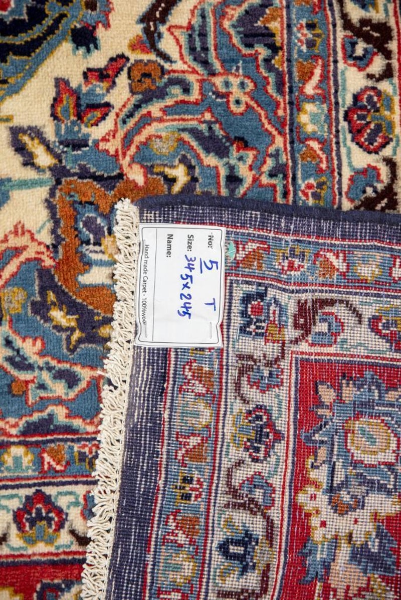 100% Lambs Wool Polished Pile, Very Solid And Densely Hand Knotted. In A Traditional Design Of A Central Medallion Shah Abbasi Palmettes In Tones Of Champagne And French Blue. Origin: Persia. Size(Cm): 345X245. Circa 1990S. Rrp: $9480