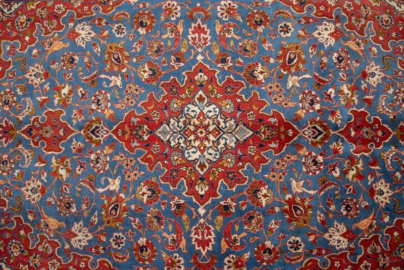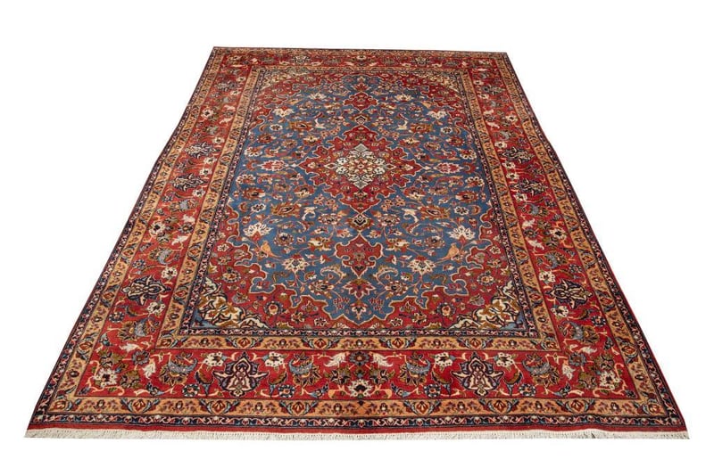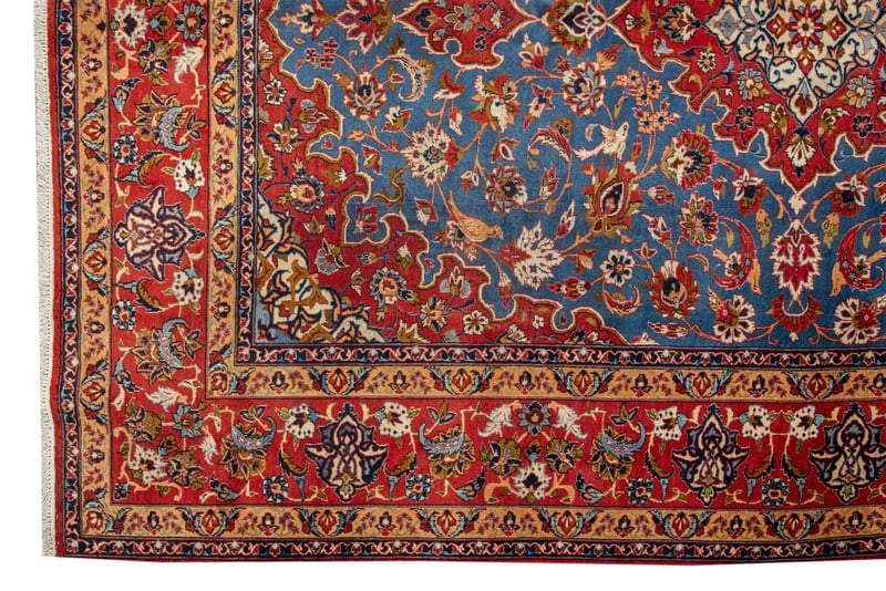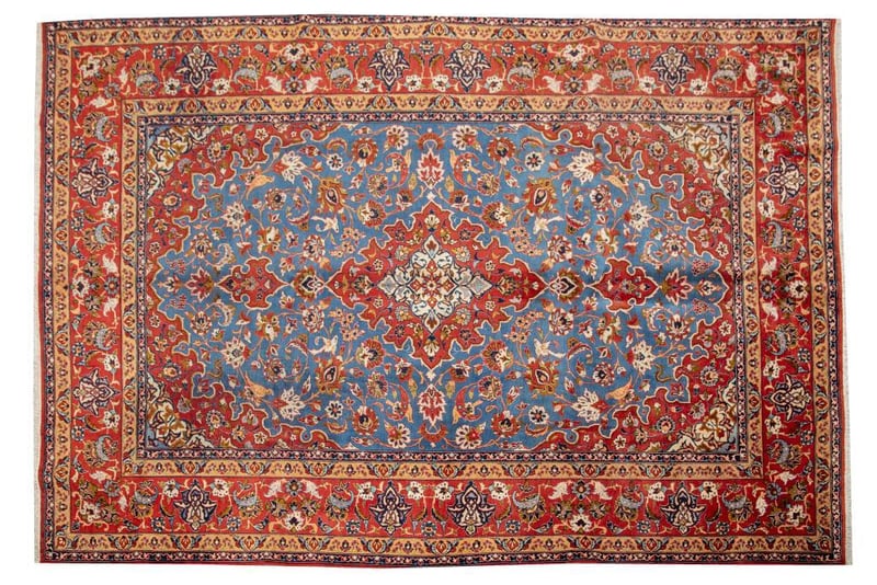 A PERSIAN ROYAL SAROUGH CARPET.100% Lambs Wool Polished Pile, Very Solid And Densely Hand Knotted. In A Traditional Design Of A Central Medallion In Soft Tones Of Persian Blue. Sha Abbasi Palmettes In Tones Of Persian Blue With Red Border. Origin: Persia. Size(Cm): 363X265 Circa 1980S Rrp: $7800Condition: Good - Refer To Images488472+4(Shipping: 145cm L X 35 cm W X 30 cm HX 40 Kg - Folded)