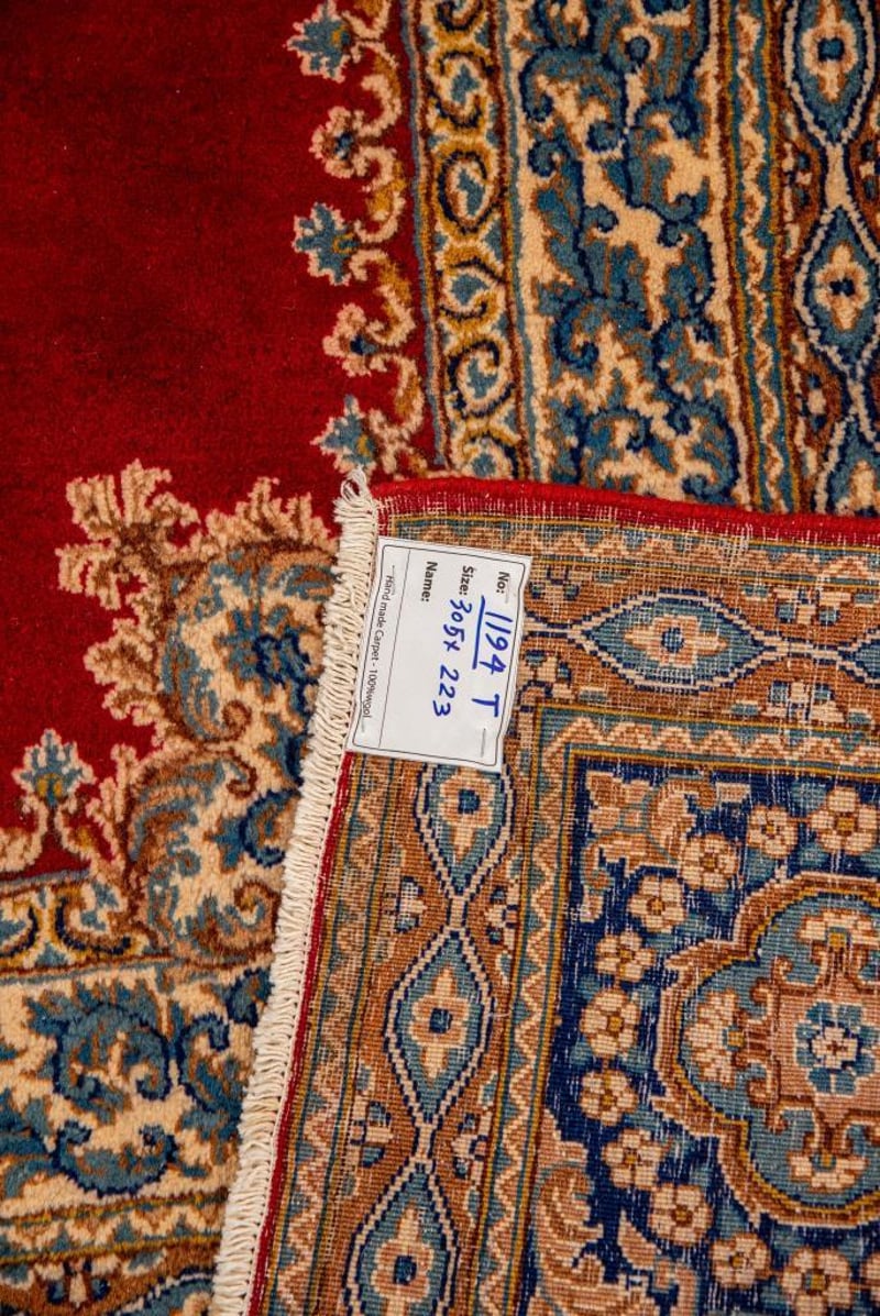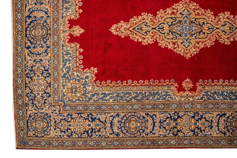 A PERSIAN ROYAL DARBARI KERMAN CARPET.100% Lambs Wool Polished Pile, Very Solid And Densely Hand Knotted. In A Traditional Design Of A Central Medallion In Soft Tones Of Red. Sha Abbasi Palmettes In Tones Of Red And Persian Blue. Origin: Persia.Sizecm): 305X223 Circa 1980S Rrp: $5200Condition: Good - Refer To Images488472+5(Shipping: 120cm L X 30 cm W X 30 cm HX 30 Kg - Folded)