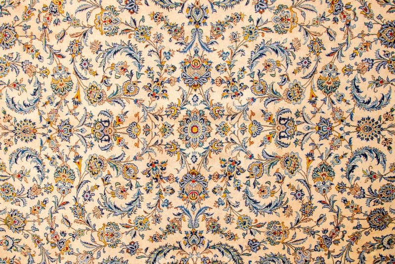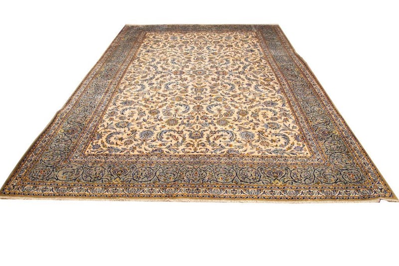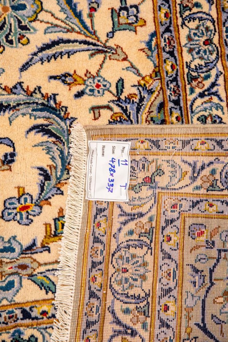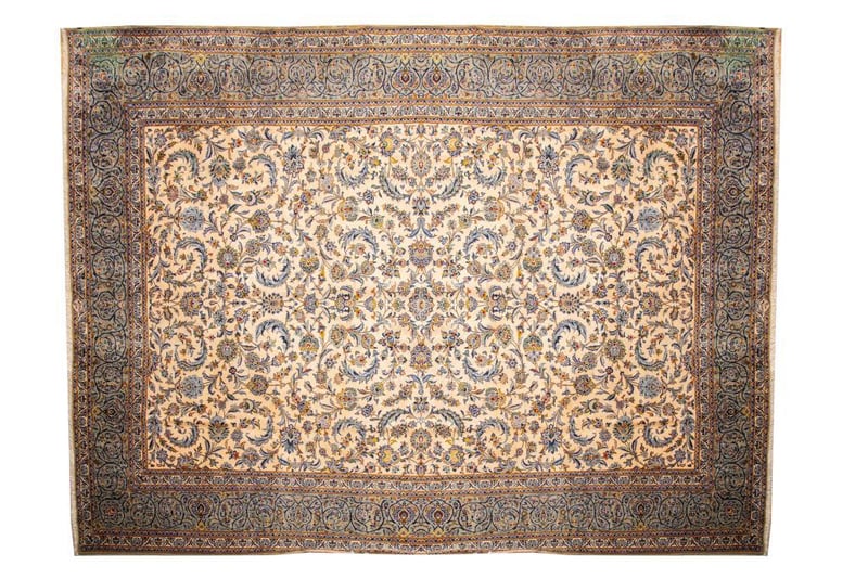 A MASSIVE VERY FINE PERSIAN ISFAHAN 55 RAJ CARPET.100% Lambs Wool Polished Pile, Very Solid And Densely Hand Knotted. In An All Over Traditional Design Of A Central Medallion Shah Abbasi Palmettes In Tones Of Champagne And French Blue. Origin: Persia. Size(Cm): 478X337. Circa 1980S. Rrp: $12800Condition: Good - Refer To Images488472+7(Shipping: 180cm L X 45 cm W X 40 cm HX 60Kg - Folded)