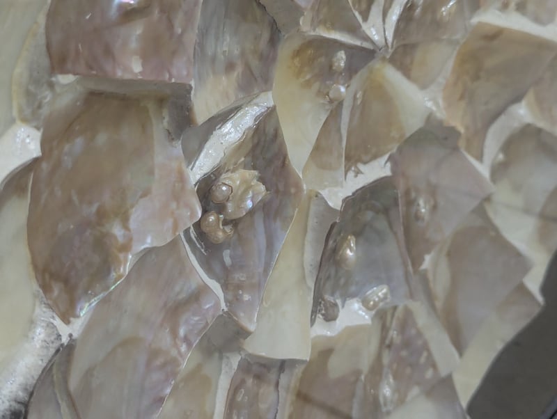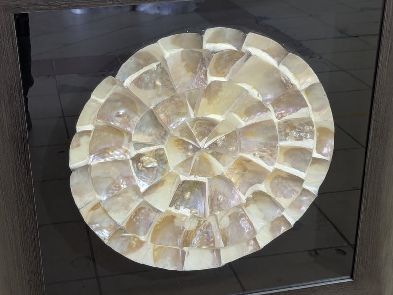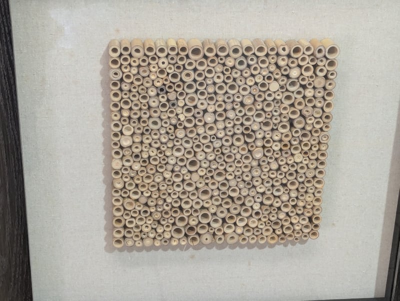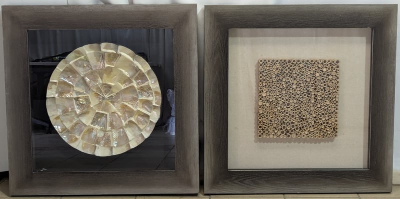 Two decorative framed wall artwork, one item features parabolic shell style design