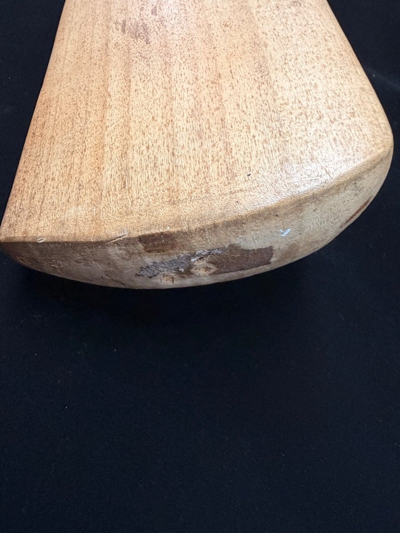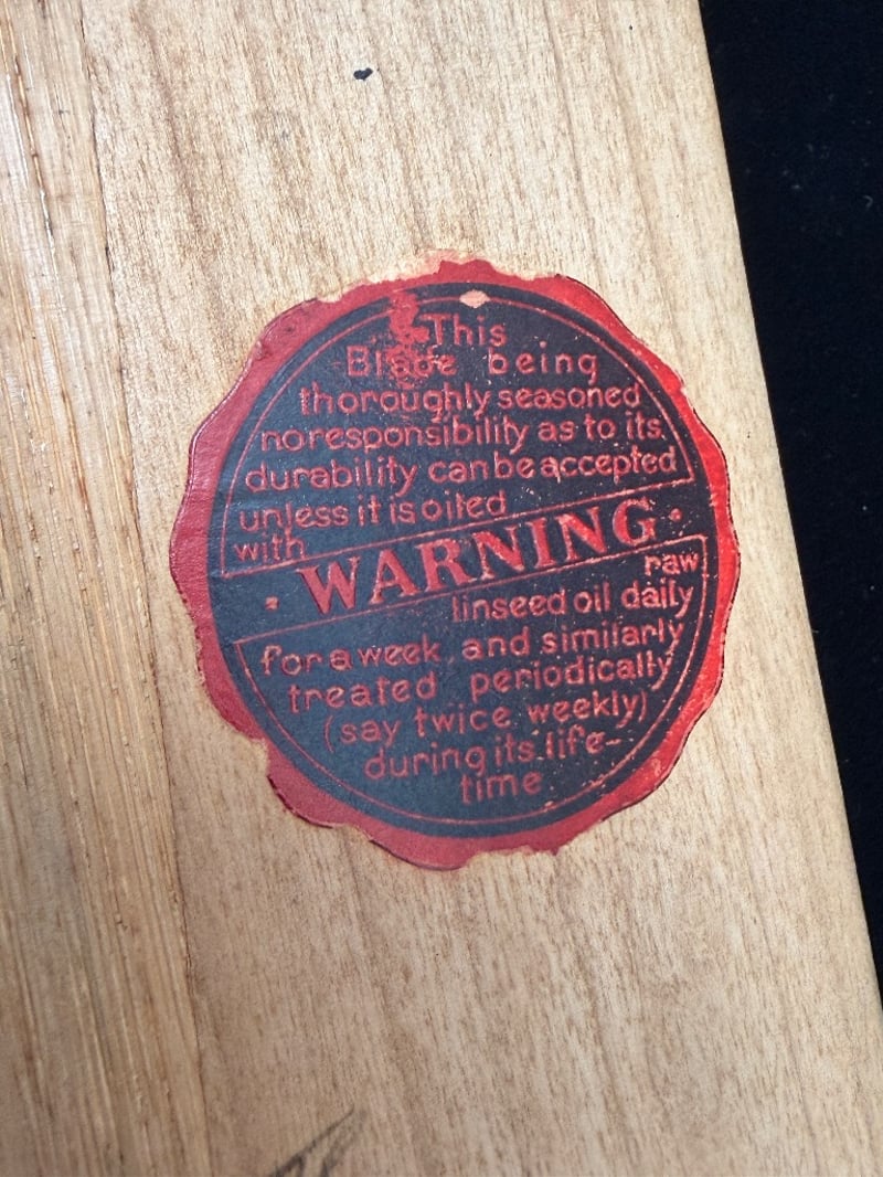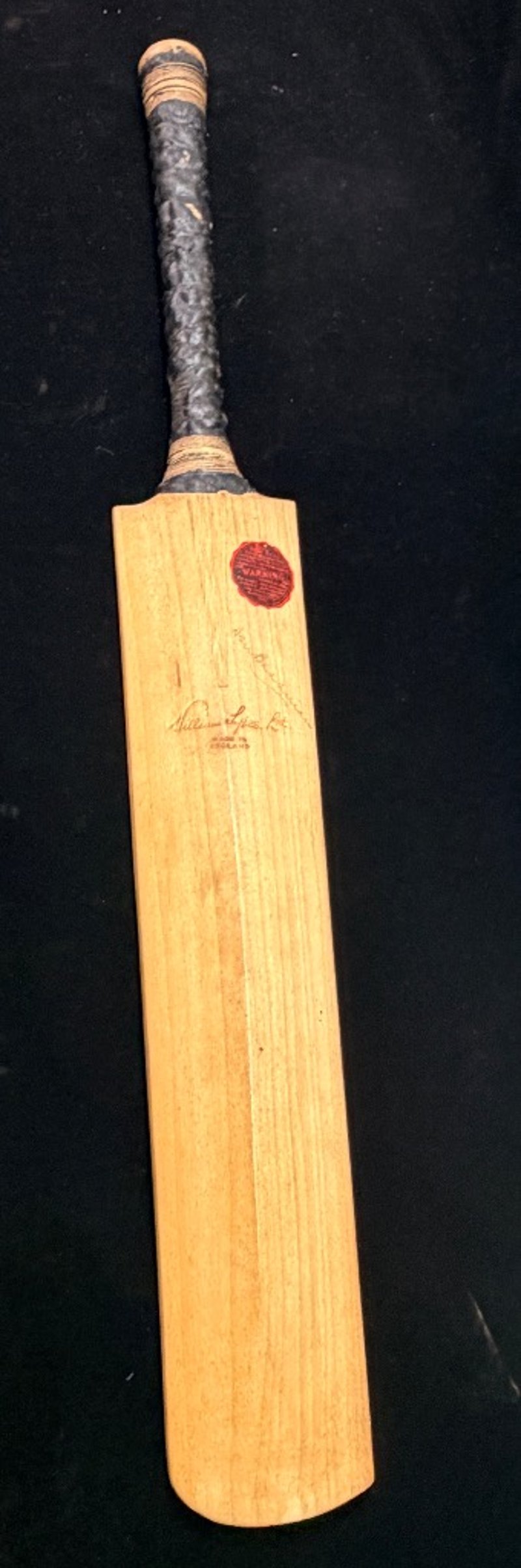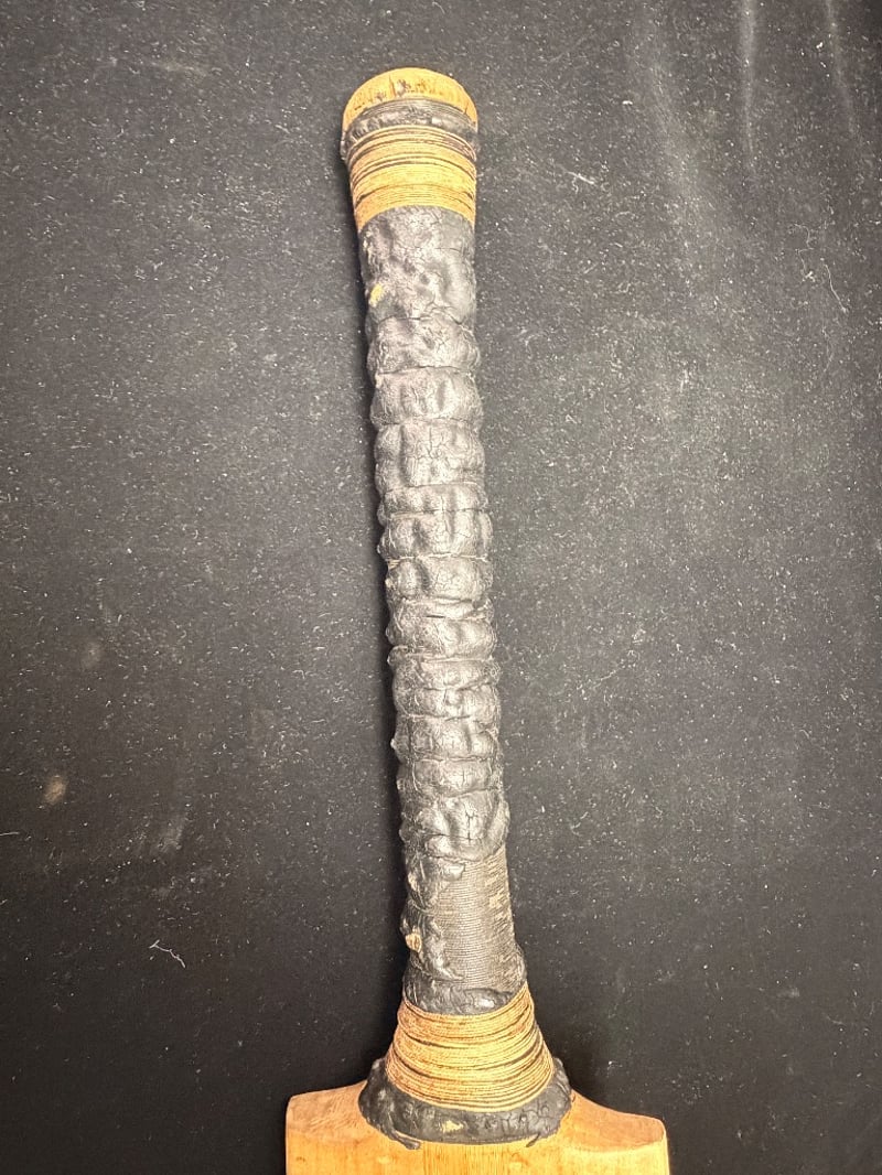 The bat has been cleaned too zealously in the 1970s, while removing grime, and more obvious evidence of match-use, this has also reduced the visibility of about 100 signatures, and information to both the front and reverse face of the blade.