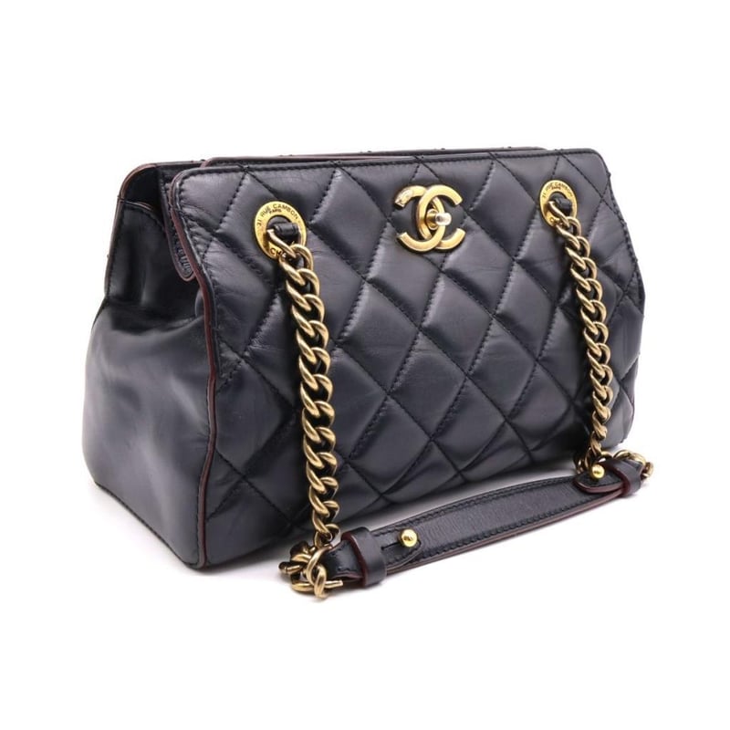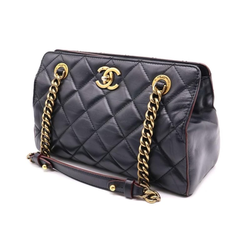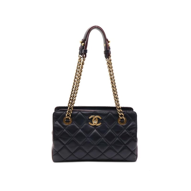 CHANEL BLACK LAMBSKIN LEATHER QUILTED SHOULDER BAG Exterior Material Leather with gold-tone hardware, CC turn-lock closure at front, protective metal feet and dual top handles. Interior Material Textile lining with a main compartment and a zipped pocket. Length: 26.5cm Height: 17.5cm Depth: 12cm Handle Drop: 21cm Additional Condition Report - Minor sign of wear and tears on exterior - Minor wear in interior - SIgn of wear and scratches on hardware Comes With - Certificate of Authenticity CROSSED DOCKED 155556+20
