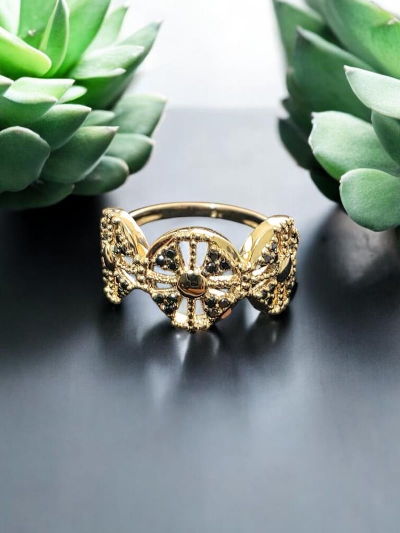9CT YELLOW GOLD NATURAL BLACK DIAMOND & DIAMOND RING