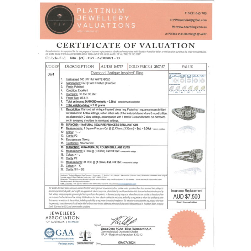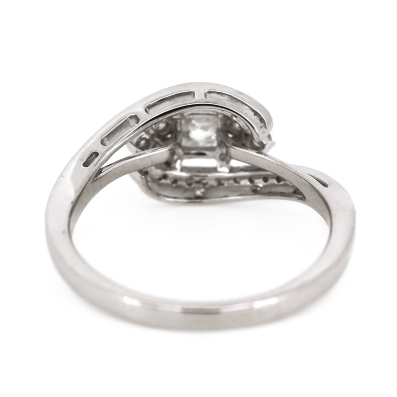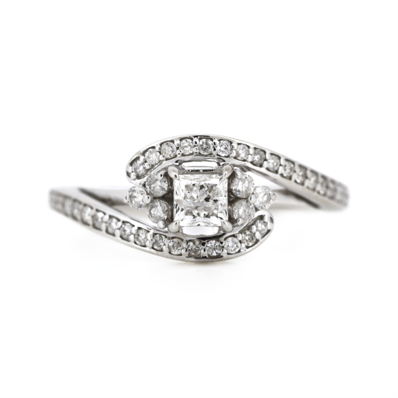 The Centre Features, One Princess Cut, Diamond (0.30Ct, H-J Colour, P2 Clarity), 4 Claw Set. Embellishing The Design Are, 40 Round Brilliant Cut, Diamonds (0.28Ct Tdw, H-K Colour, Si1-P2 Clarity), Claw/Bead Set. Ring Size M.