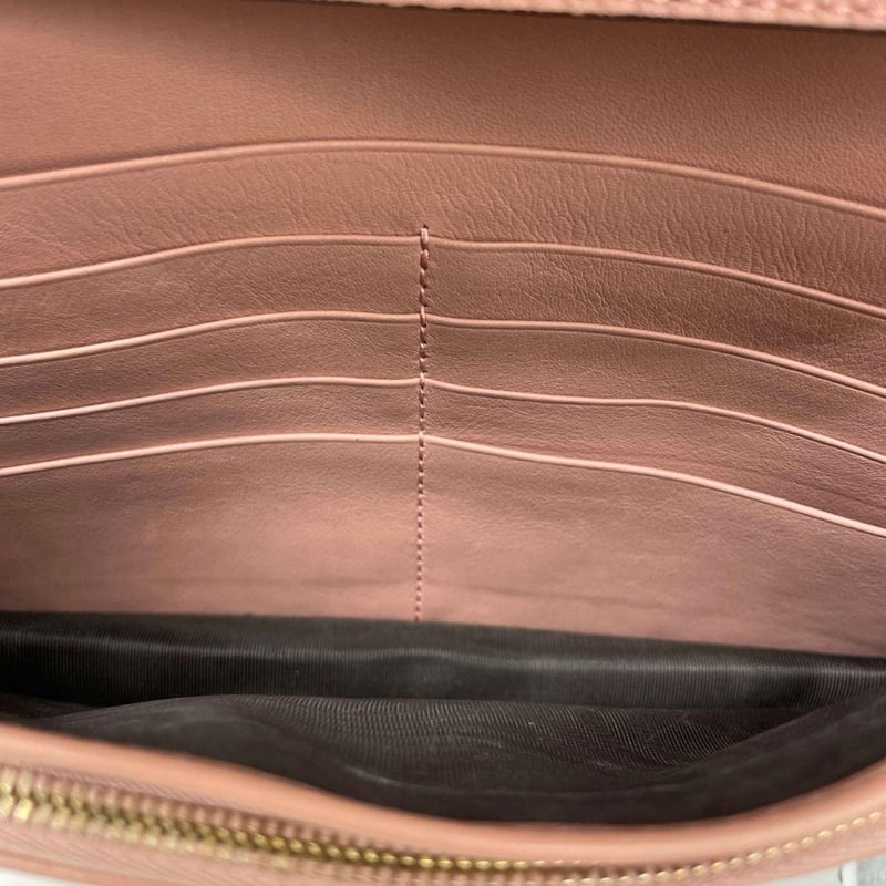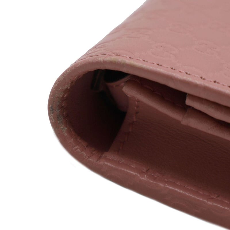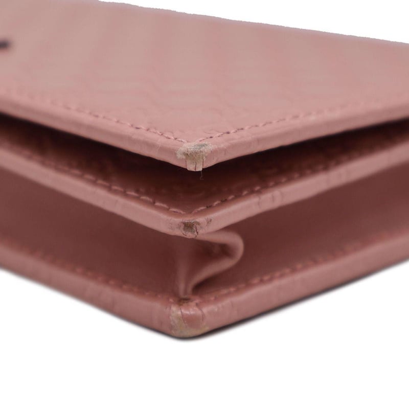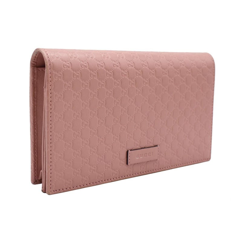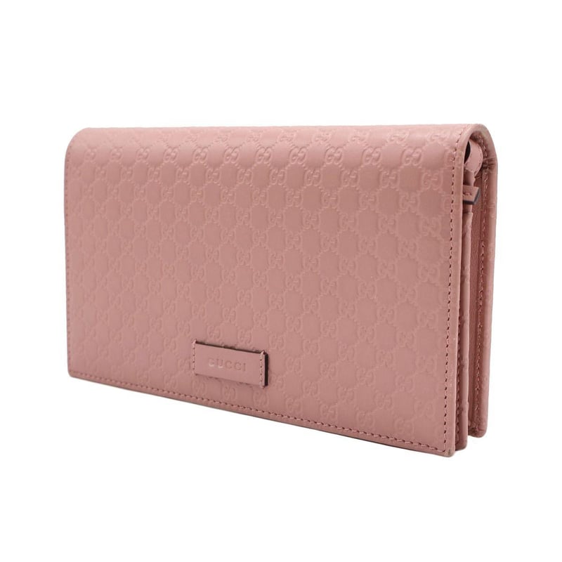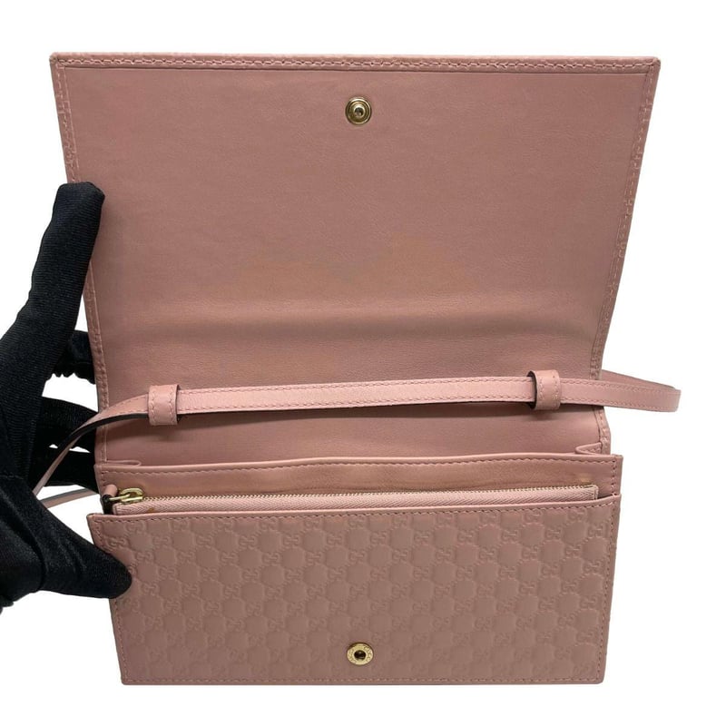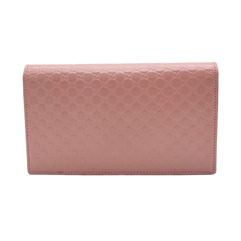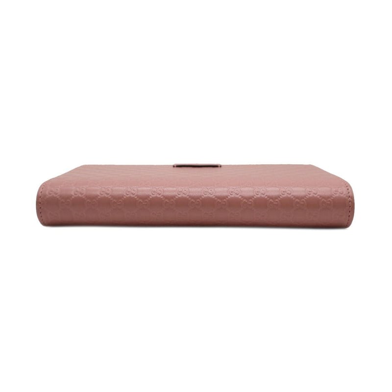 GUCCI PINK MICRO GUCCISSIMA LEATHER WALLET CROSSBODY BAG Length: 20cm Height: 12cm Depth: 3cm Strap Drop: 56cm Detachable Adjustable Exterior Material Leather with gold-tone hardware, front flap snap button closure and a shoulder strap. Interior Material Textile lining with a main compartment, a zipped compartment and card slots. Additional Condition Report - Moderate sign of wear and tears on exterior - Visible scuffs and tears on exterior corners and along the edges - Moderate wear in interior - Sign of scratches on hardware Comes With - A Detachable Strap - Certificate of Authenticity CROSS DOCK 155458+41