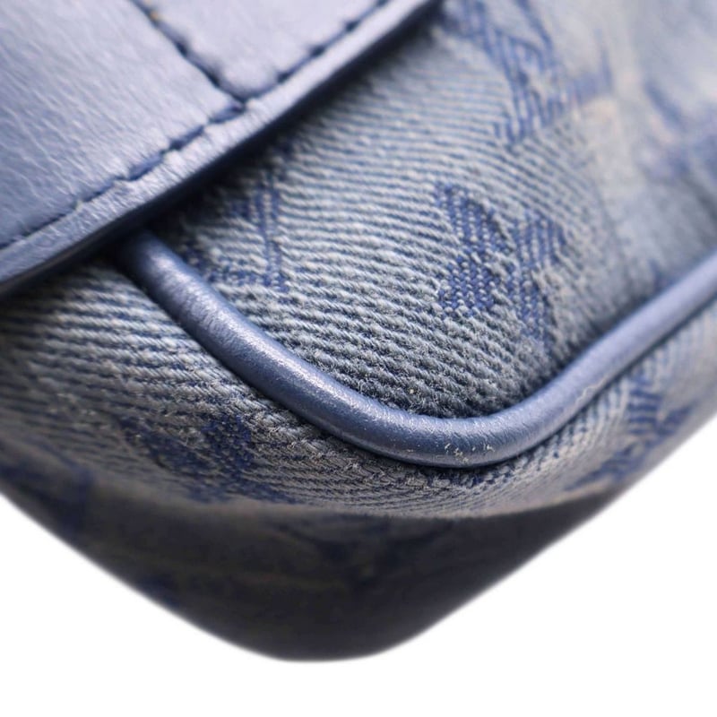 LOUIS VUITTON DENIM MONOGRAM BUMBAG Item Size: Height: 15cm, Width: 22cm, Depth: 5cm Exterior Material Monogram Denim And Leather Trim With Gold-Tone Hardware, A Front Zip Pocket, Zip Around Closure And A Waist Strap. Interior Material Textile Lining With A Main Compartment. Additional Condition Report - Moderate Sign Of Wear, Tears And Marks On Exterior - Minor Wear In Interior - Sign Of Wear And Scratches On Hardware Waist Strap Drop: 42Cm Adjustable Comes With - Certificate Of Authenticity CROSS DOCK 155511+20