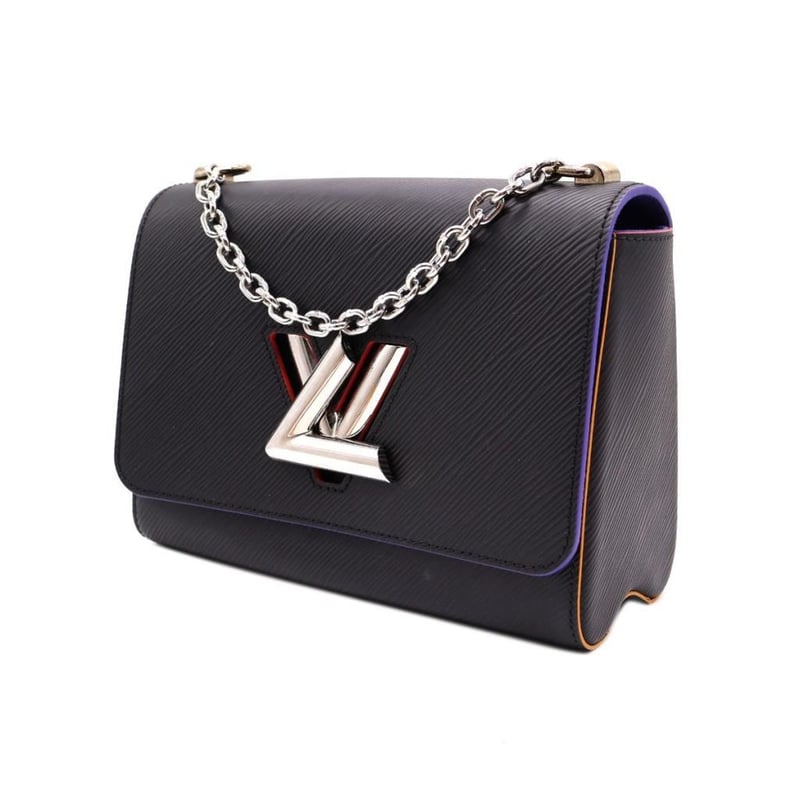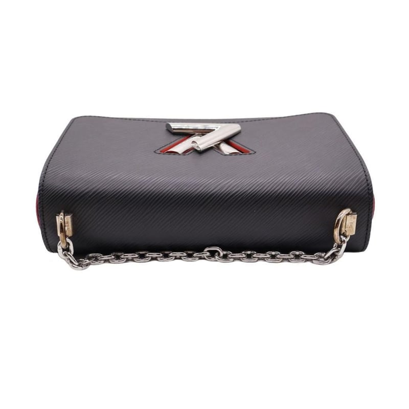 LOUIS VUITTON BLACK EPI LEATHER MM TWIST Length: 23cm Height: 17cm Depth: 10cm Handle Drop: 9cm Strap Drop: 25cm Detachable Exterior Material Epi leather with silver-tone hardware, single top handle, LV logo turn-lock at front flap and a shoulder strap. Interior Material Alcantara lining with a main compartment and two patch pockets. Additional Condition Report - Minor sign of wear and tears on exterior - Minor wear in interior - Visible oxidised and scratches on hardware Comes With - Original Box - Original Dustbag - A Detachable Strap - Certificate of Authenticity CROSSED DOCKED 162801+7