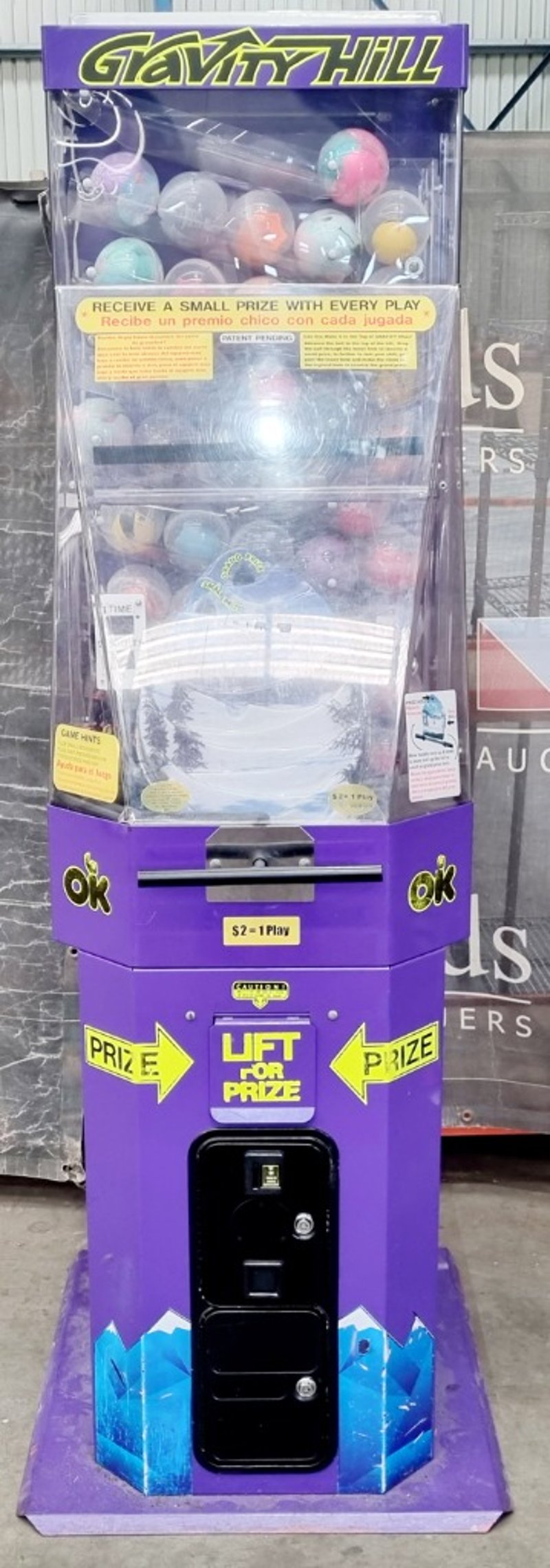 Redemption Arcade Machine, Model: Unknown, Serial: A13811, Gravity Hill, Zax Amusements, Includes Manual, Power Cord, Does Not Include Keys, Not Set On Free Play, Good working machine refurbished by Zaks, this skill tester keeps players engaged and striving to earn the key prize. Game come complete with prizes and is a solid earner for your venue. Approx Dimensions: 210cm X H, 76cm X W, 76cm X D