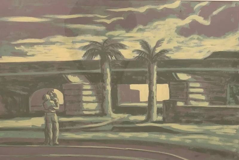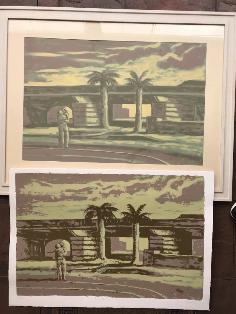 RICK AMOR (1948 - ) Original Acrylic On Paper. Title: "The Bridge", 1990 Image Size: 68cm x 101cm Frame Size: 103cm x 132cm Signature Details: Signed Lower Right Title On The Centre, Dated Lower Left. Condition: Good - Refer To Images This Lot Comes With A Limited Edition Screen-Print Signed And Numbered By Rick Amor.The Print Is Based On This Original Artwork Is Framed. Crossdock 163000+28