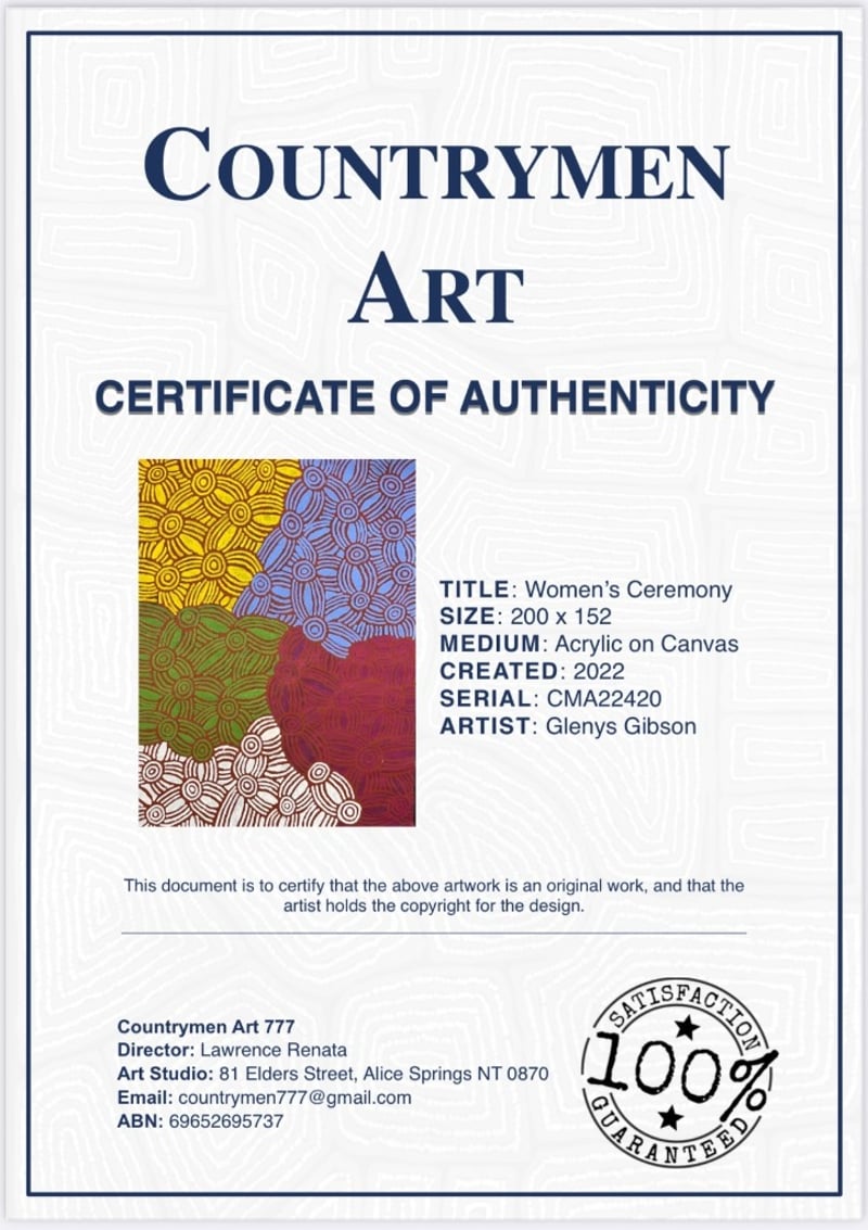 GLENYS GIBSONAcrylic On CanvasTitle: Women'S CeremonySheet Size: 200cm x 152cmSignature Details: Signature On The BackAccompanied By A Certificate Of AuthenticityCondition: Good - Refer To ImagesBeverley782508+2