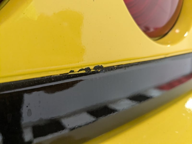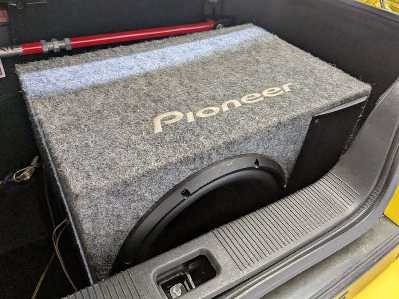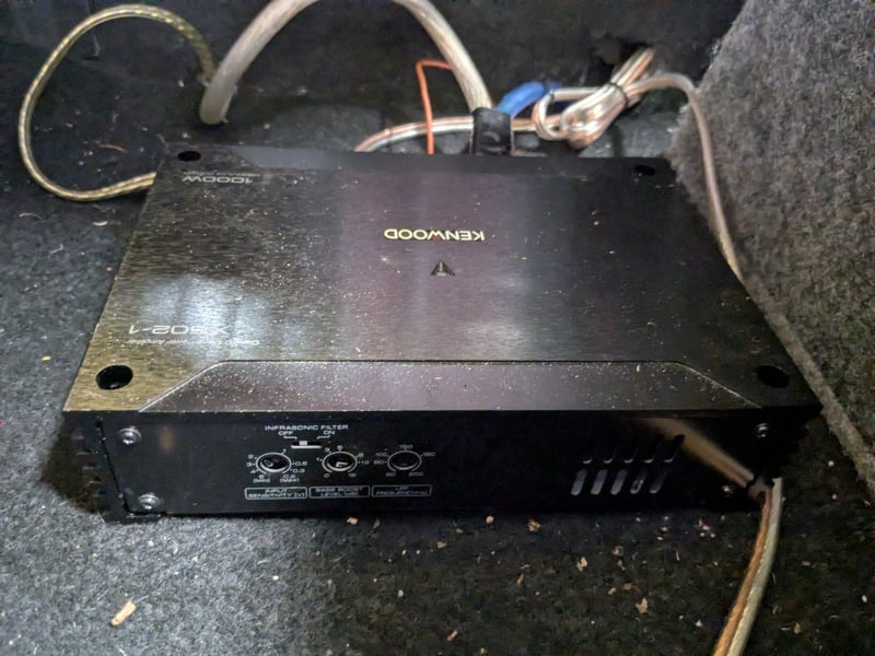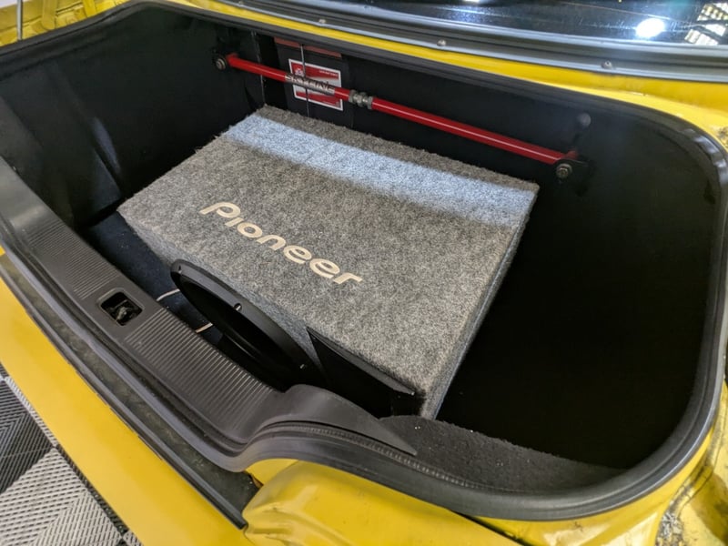 Interior and exterior modifications include multiple gauges, Mako dash insert, aftermarket audio setup with subwoofer and amplifier, GTR-style rear spoiler, tinted headlights, and hidden kill switch systems. Wear is noted throughout, including scratches, marks, paint chips, sealing wear, and interior deterioration consistent with age and modification history.