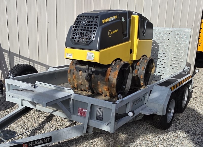 Bomag BMP8500 Articulated Multipurpose Compactor on Nugent Trailer