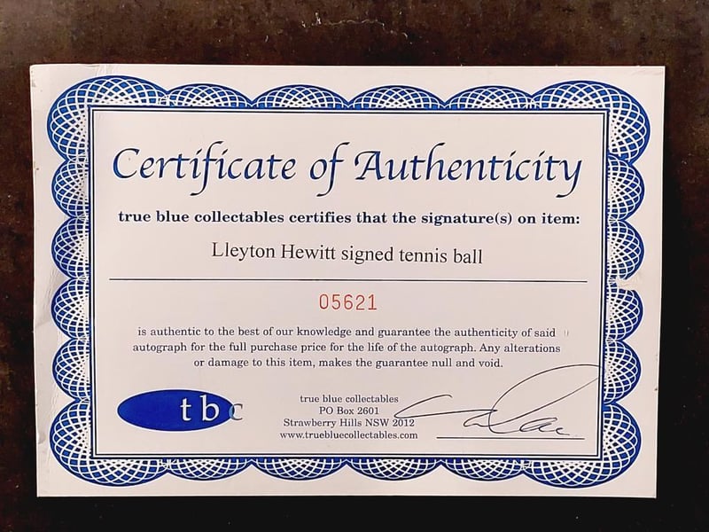 LLEYTON HEWITT HANDSIGNED TENNIS BALL IN FRAMED DISPLAYComes With Certificate Of Authenticity From True Blue CollectablesSize: 57cm x 62cm x 11cmCondition: Excellent - Refer To Images155566+5