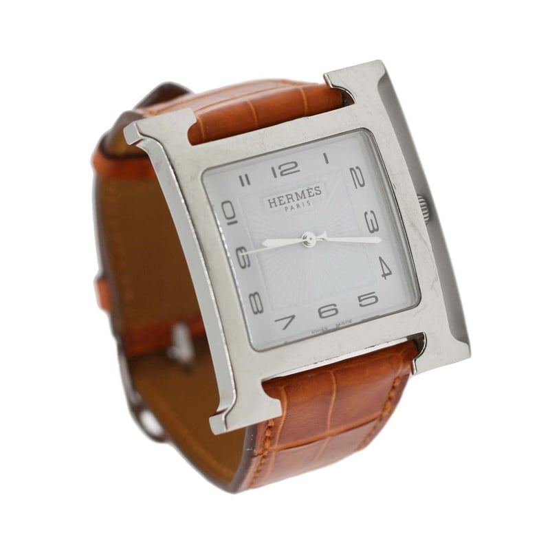 HERMES HEURE H WATCH 34 MM Price Guide - $1,000 - $2,500 Length: 23cmHeight: 25mmMaterialSteel case and leather strapMovement- Quartz movement, Swiss Made.Water Resistant- Water-resistant to 3 bar.Additional Condition Report- Moderate sign of wear throughout- Moderate scratches on hardwareComes With- Original Box- Proof of Purchase Price Guide - $1,000 - $2,500 CROSSED DOCKED155392+47