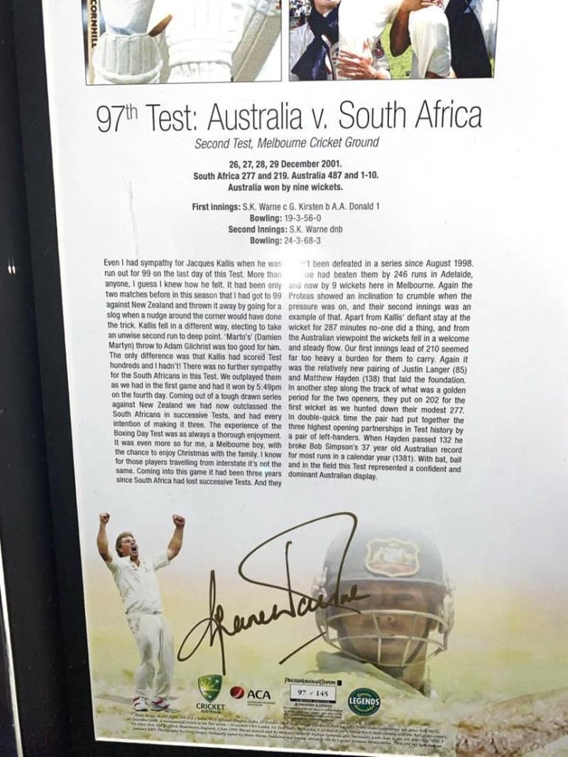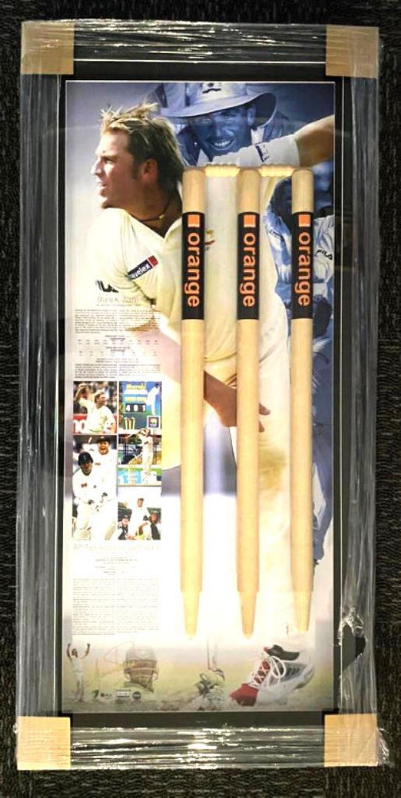 SHANE WARNE 97TH TEST AUS V RSA FRAMED SIGNED MATCH WICKETS. ITEM IS 1 OF A KIND Spanning 145 Test Matches Over 15 Years, The Career Of The World'S Most Successful Spin Bowler Is Littered With Benchmarks And Outstanding Achievements. Own A One Of A Kind Piece Of History With These Framed Test Wickets From The 97Th Test: Australia V South Africa. These Are An Absolute One Of A Kind. CROSS DOCK 155544+52