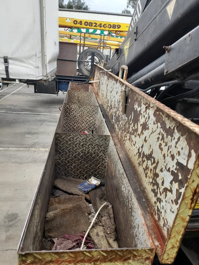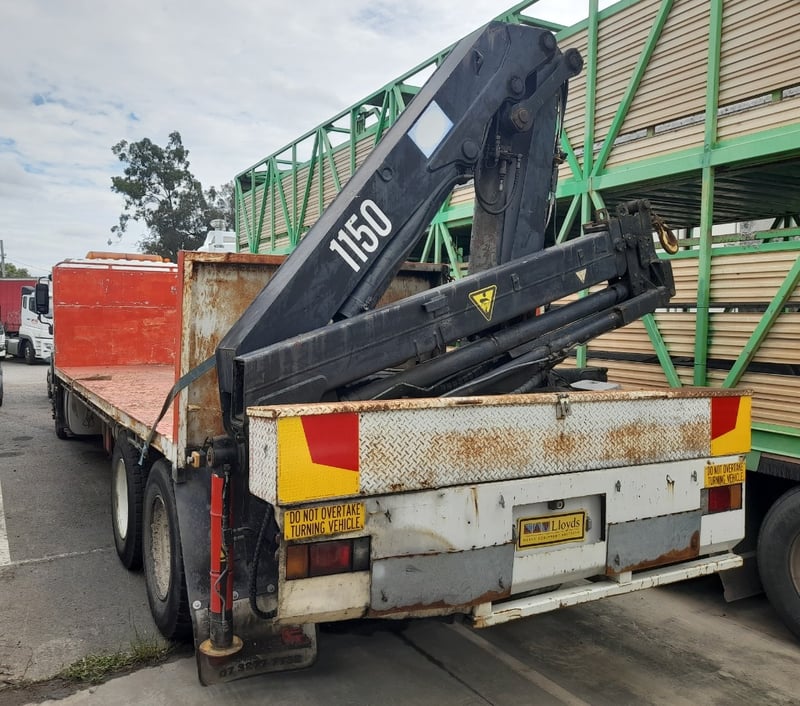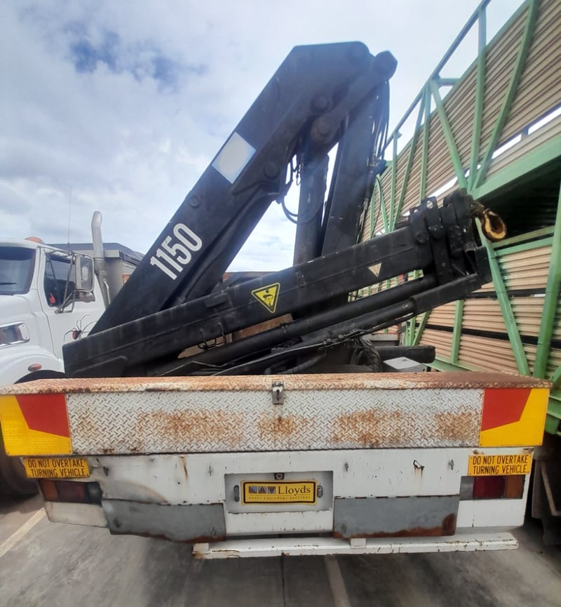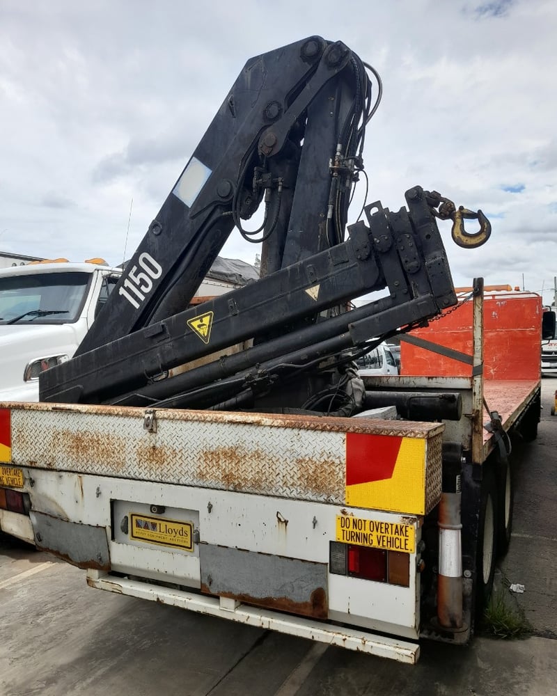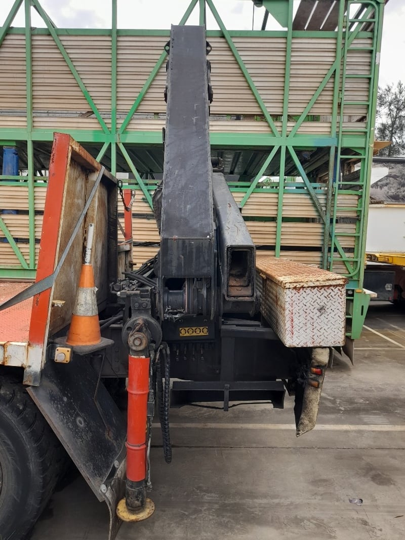 Description/extras: 2x New Batteries, Bullbar, Air Conditioning, Power windows, SRS airbag, electric seats, Tinted windows, Owners manual. 7.5m long flat back tray with crane, service works crane, model: HMF 1150, cd player, UHF radio