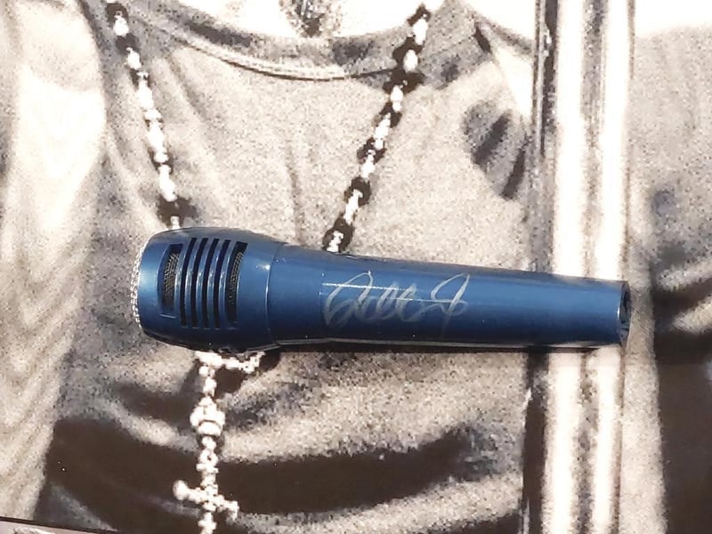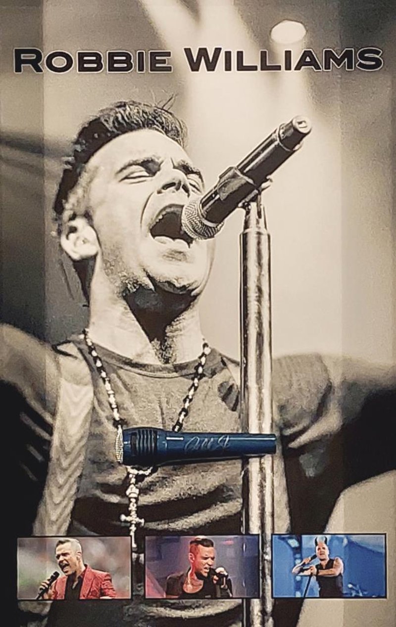 ROBBIE WILLIAMS HANDSIGNED MICROPHONE IN FRAMED DISPLAY Comes With Certificate Of Authenticity From Ama Size: 84cm x 54cm x 8cm Condition: Excellent - Refer To Images 155566+73