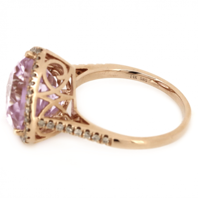14K ROSE GOLD, 7.54CT KUNZITE AND DIAMOND, STATEMENT RING.