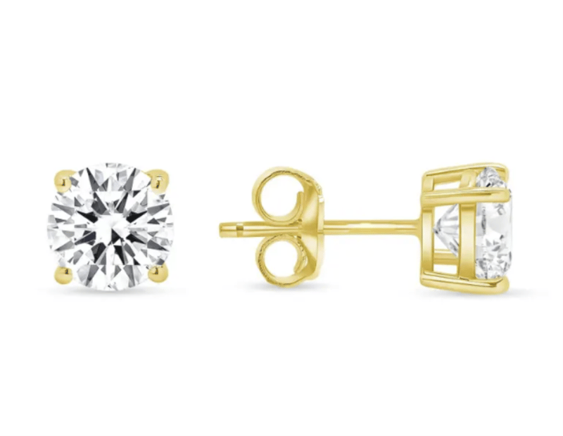 18K YELLOW GOLD LAB GROWN 4 CLAW STUDS EARRING 1.06CT D-E VVS+