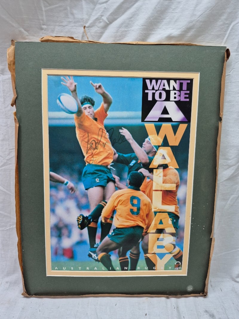 AUSTRALIAN RUGBY LEAGUE "WANT TO BE A WALLABIES" PROMOTIONAL POSTER SIGNED BY JOHN EALES 1996