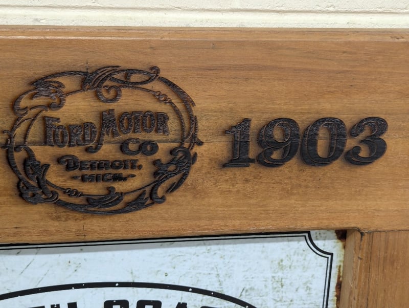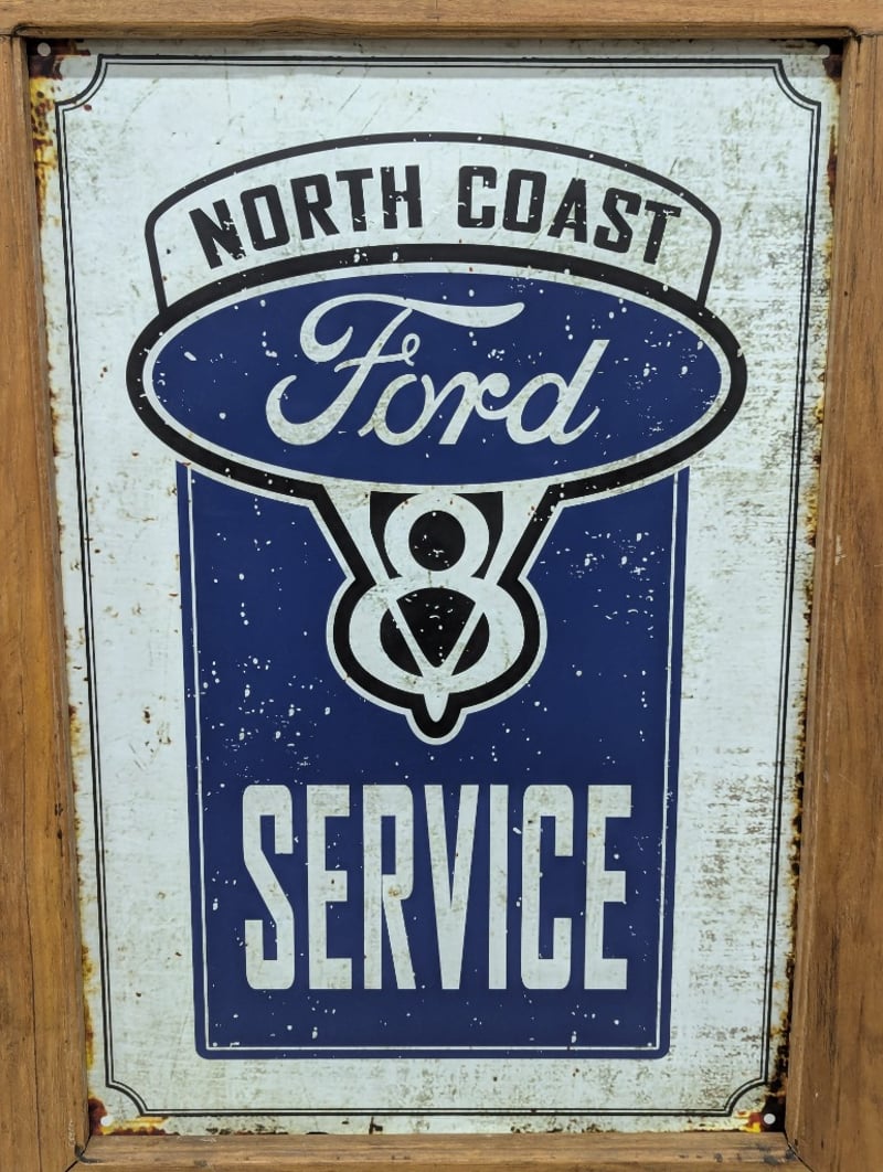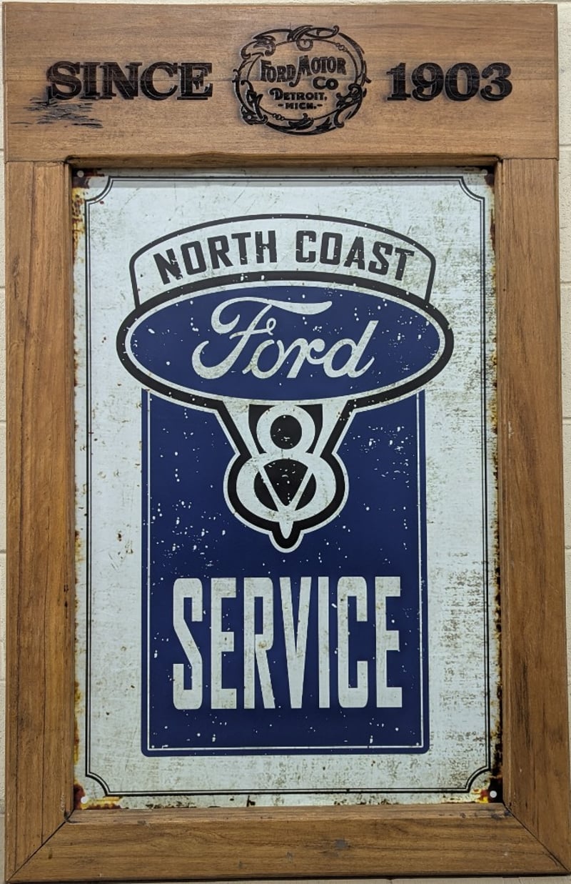 FORD MOTOR DECORATIVE TIMBER BOARD Item Size: Height: 122cm, Width: 78cm, Depth: 4cm, Weight: 16.7Kg Timber Board With 'Ford Motor Co - Since 1993' Engraved On Upper Board, North Coast Ford Service Picture In Centre Condition: Good - Refer To Images 586274+4