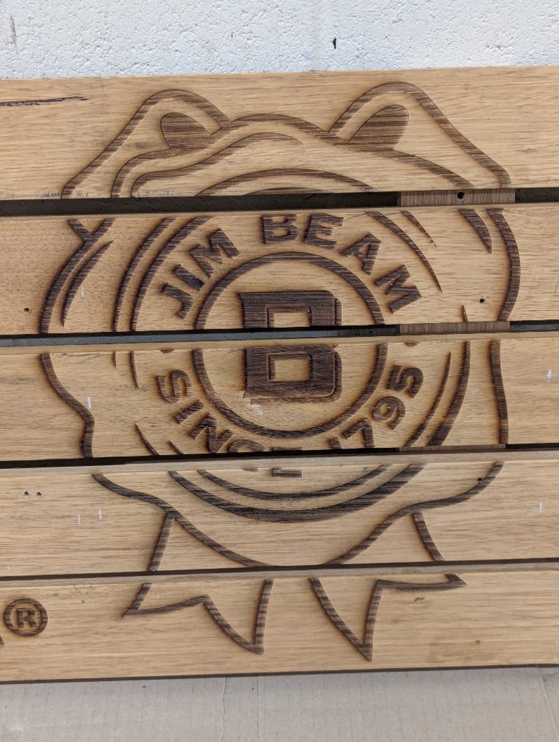 Five Board Style Design, Jim Beam Logo Etched Onto Sign Front