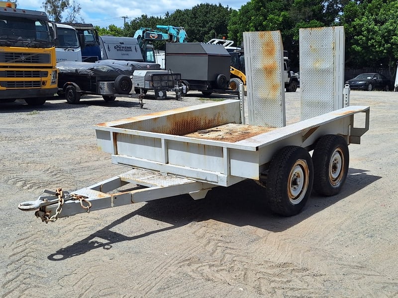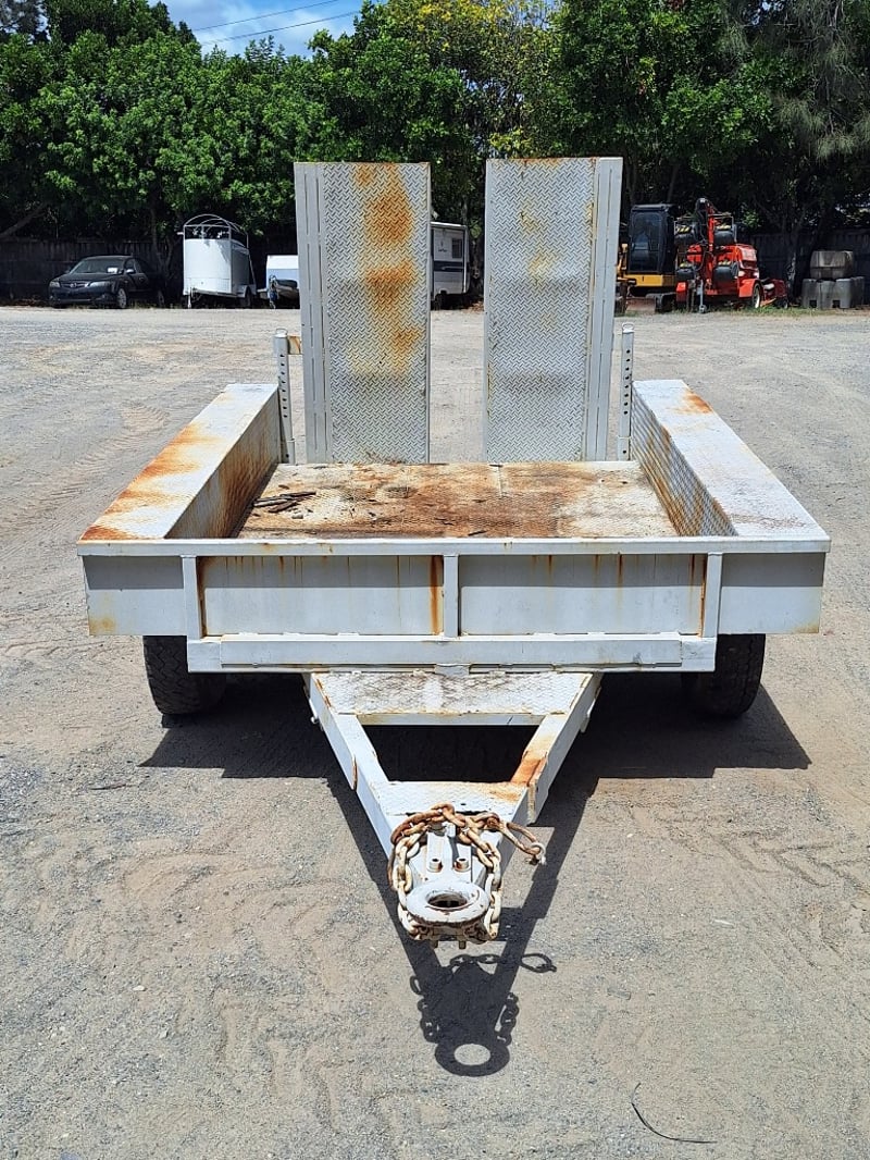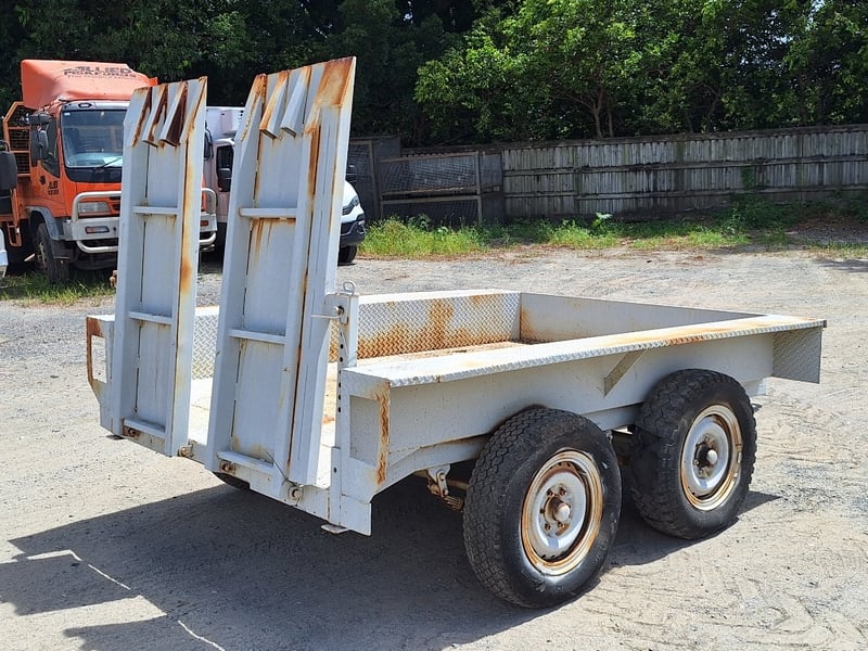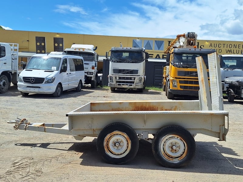 Description/Extras: Dual Axle Pig Trailer, Approximate Capacity 2T, Chains, Manual Release Rear Loading Ramps Woth Stabilisation Legs X 2, , Approximate Trailer Dimensions Not Including Drawbar: 2630mm (L) x 2160mm (W)