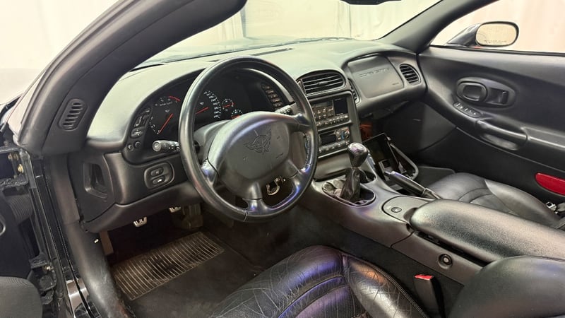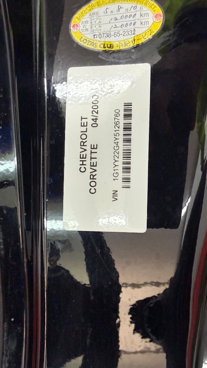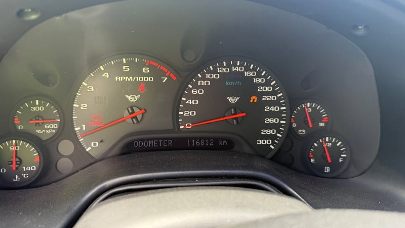 2000 Chevrolet Corvette C5 two‑door coupe finished in black. Rear‑wheel drive, powered by a 5.7‑litre (350ci) V8 petrol engine paired with a manual transmission. Odometer indicating 116,812 kilometres.